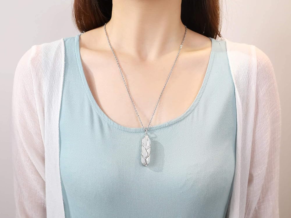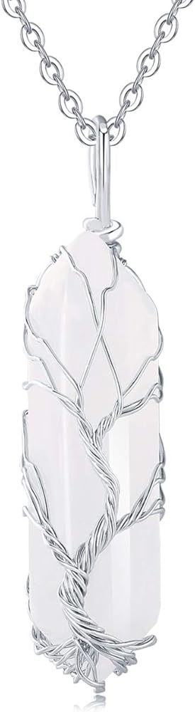 Natural Crystal Point Necklace, dainty tree of life wrapped pendant, the healing quartz jewelry suits for mom, girlfriend, wife; a good gift choice for birthday, Christmas, Mother's Day, Valentine's Day, anniversary and etc.