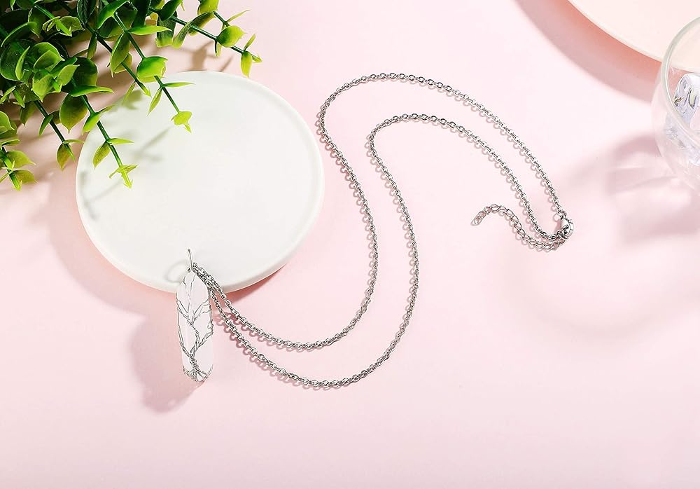 Specification: Necklace Chain: 24 inches (60cm). Crystal Point Pendant: 38mm*12mm. Weight: about 10g. Material: natural crystal stone & Stainless steel.