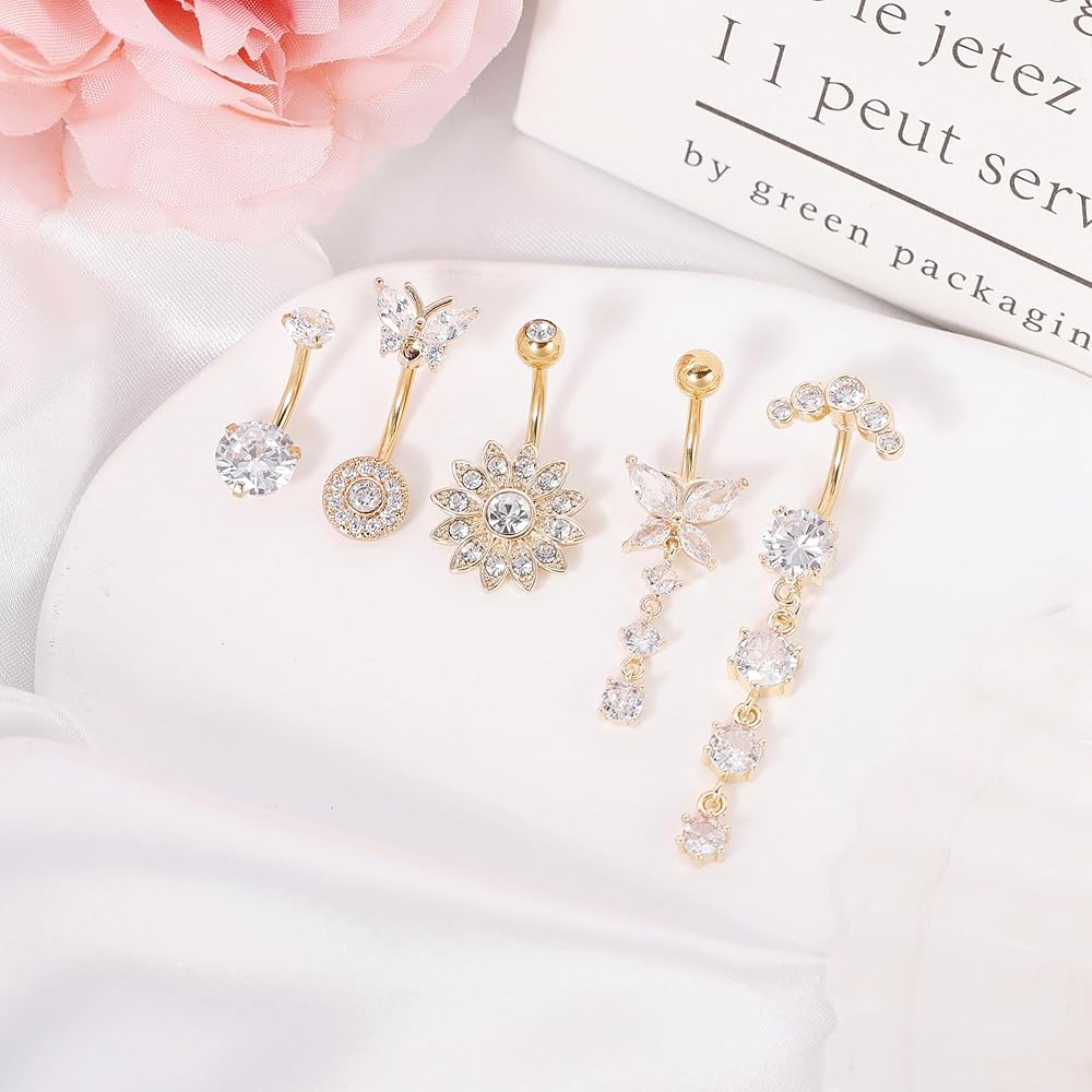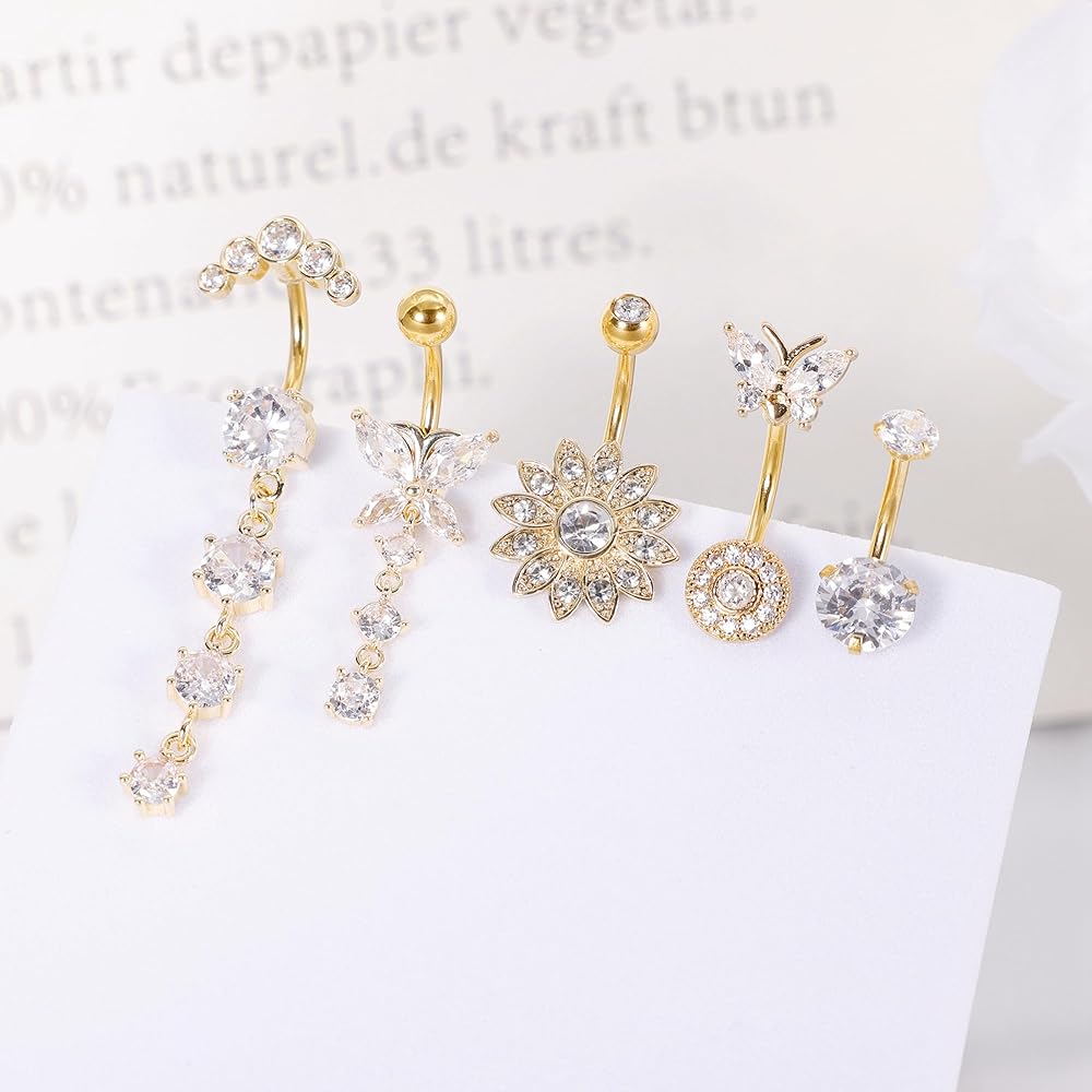 SIMPLE AND ELEGANT DESIGN:Shiny AAA+ Cubic Zirconia Inlaid, Adding a Touch of Elegance and Sophistication to Your Look. Butterfly Belly Rings, Sunflower Navel Rings and Basic CZ Belly Rings, Suit for Everyday Wear and Any Occasion