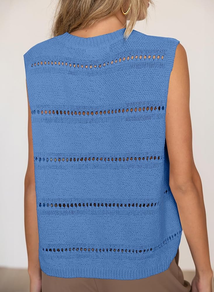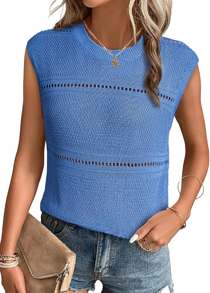Design:This cute tops for women features a sleeveless, round neck design, stylish hollow out knit, and loose fit, offering a chic and fashionable look.The summer tops for women 2025 offers maximum comfort and style. You will receive compliments when you wear this womens summer tops.