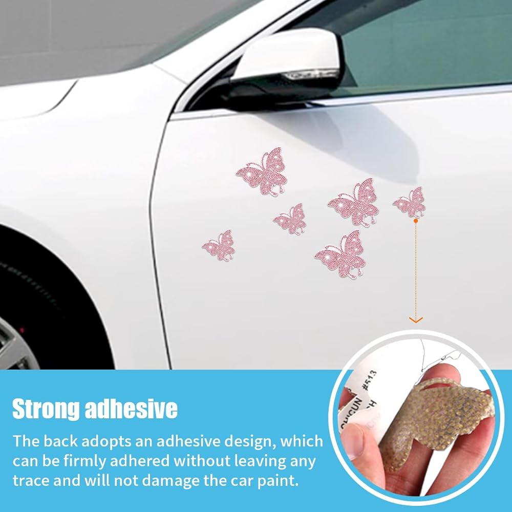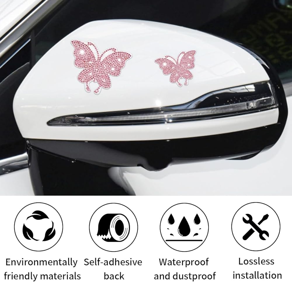 The bling car crystal butterfly decals are made of sparkling rhinestone material, glossy and beautiful, high temperature resistant, sticky, not easy to fall off, waterproof, add enough bling to your car, bring you a unique look and show your personality.
