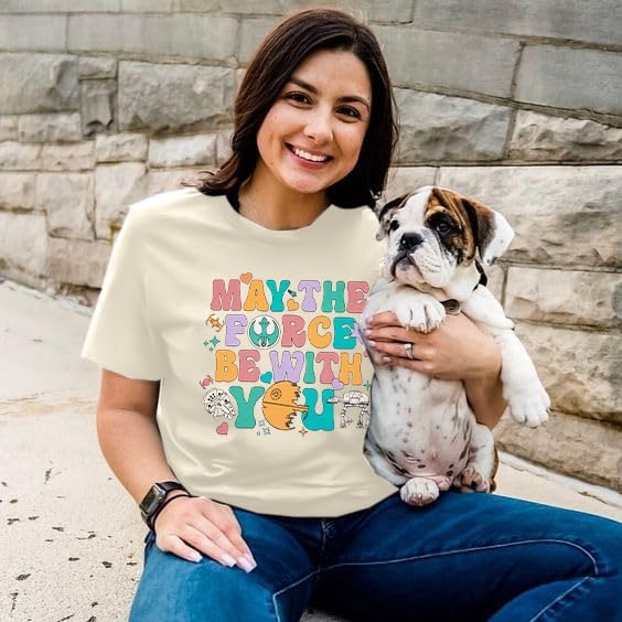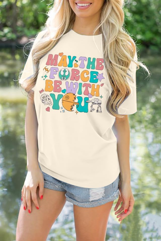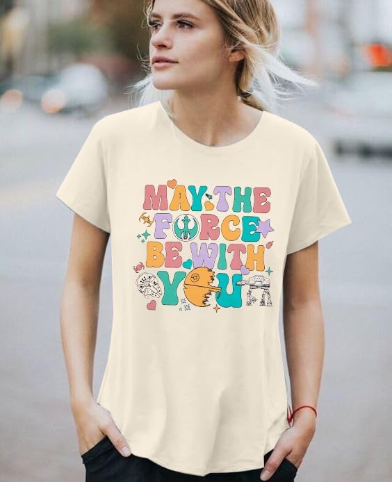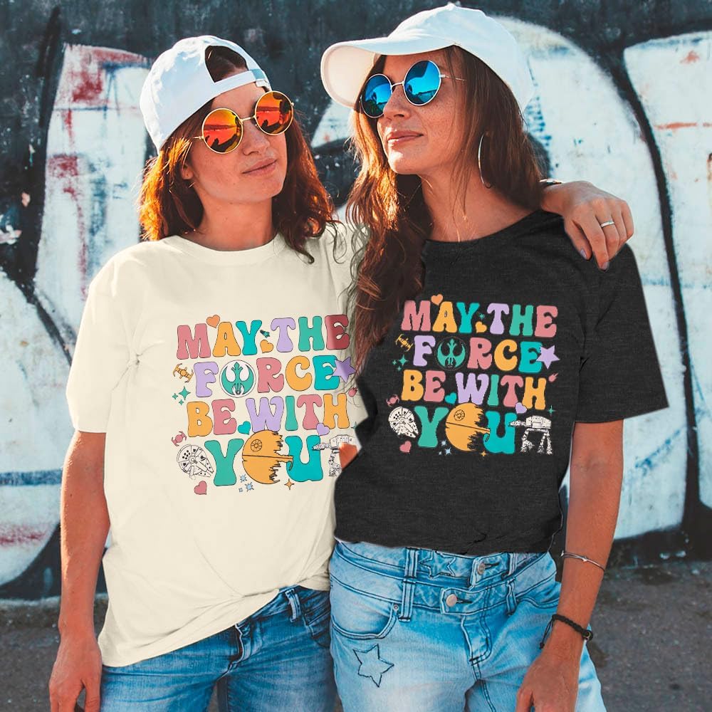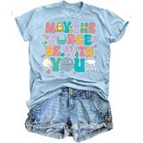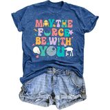 May The Fourth Be With You Holiday Gifts Shirt Cute Planet T-Shirt Fiction Lover Shirt Funny Letter Print Short Sleeve Tops