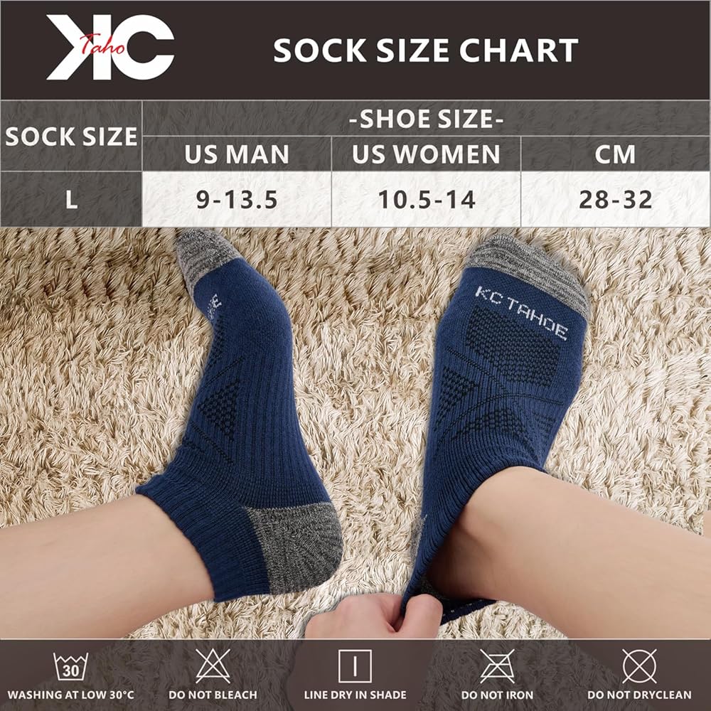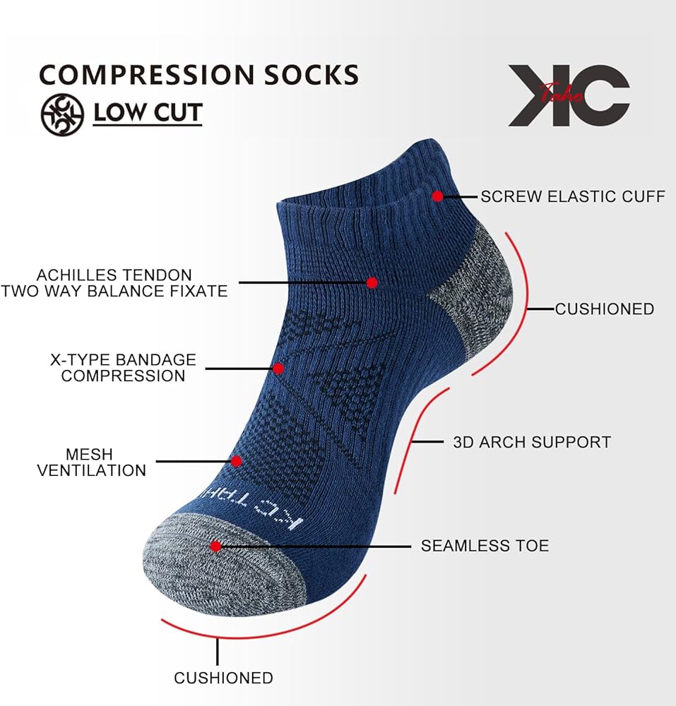 KC-TAHO, we prioritize quality, process, and performance when it comes to our Anti-odor socks. With a team of R&D technicians and quality inspectors, our goal is to provide customers with the comfort they need based on their individual needs. Our Anti-odor Low Cut Ankle Socks feature Achilles tendon design that offers two-way support, balancing your feet, preventing heel pain and ensuring you can move comfortably without feeling too tight. The heel tab design of our cotton compression socks supplies extra comfort and protection while preventing friction and blisters. The thickened cushioned design of our athletic compression socks also helps absorb impact and reduce friction, ensuring your feet stay energized all day. Our socks are made of 78% combed cotton, 15% polyester, 7% spandex rubber. Before using the socks, we recommend washing them inside out and turning them inside out for optimal washing. Machine washing at low 30℃ is recommended, avoiding bleach, ironing, and dry cleaning. KC-TAHO, we provide our customers with 4 pairs of the best quality running compression socks at a cost-effective price. Additionally, each pair is hand-inspected and comes with a 30-day free return policy and 100% customer satisfaction guarantee. Contact us with any questions you may have! Investing in our compression socks is the best decision you can make for the comfort and health of your feet. Let us help you stay comfortable while keeping up with your active lifestyle!