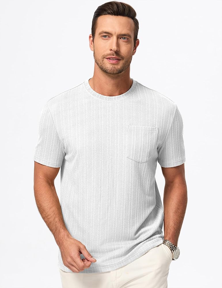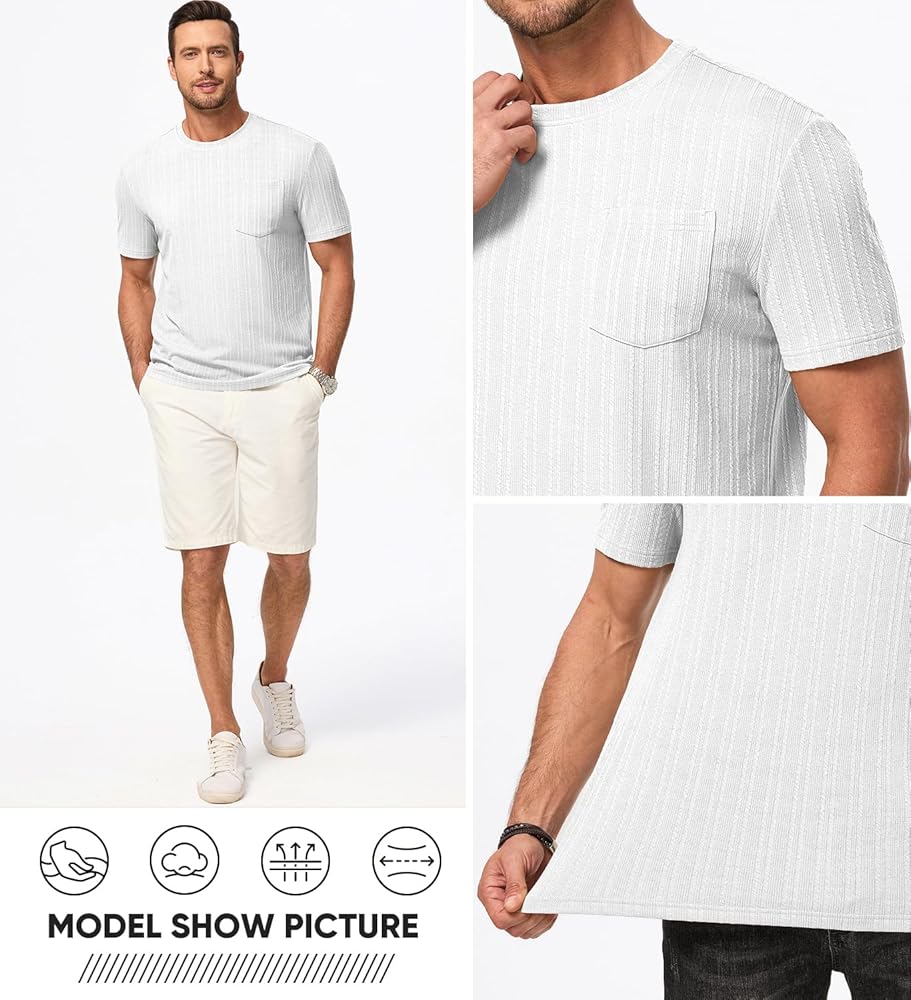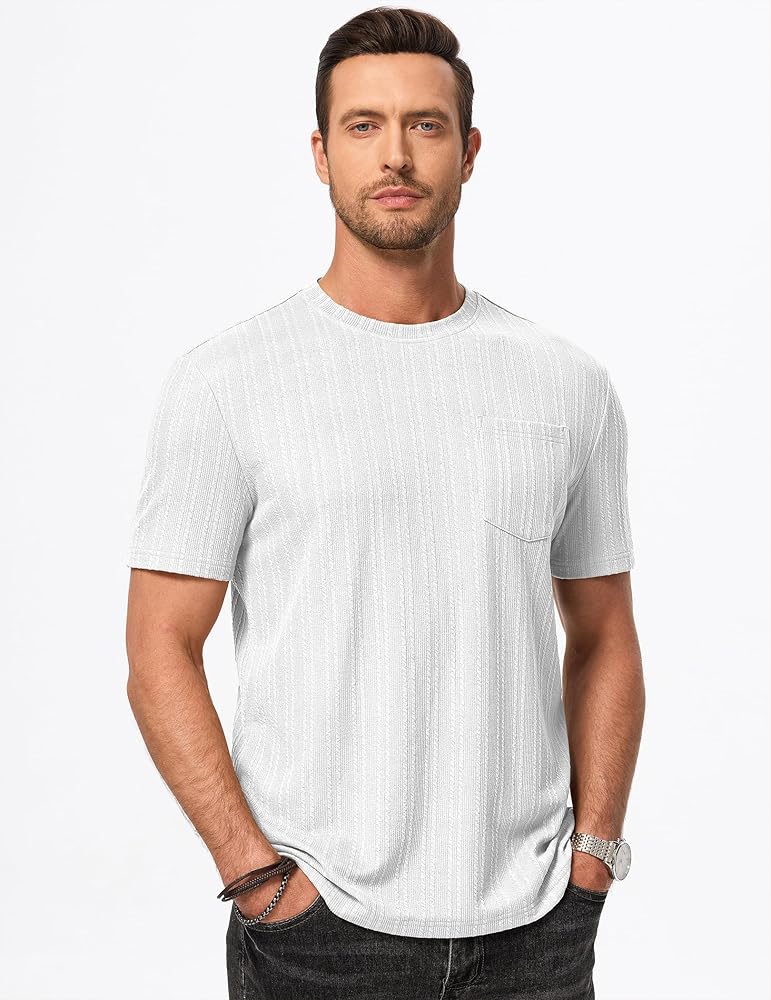 Unique Design: Featuring a classic crew neck and stretchy, skin-friendly fabric that ensures all-day comfort. The solid textured knit fabric adds a touch of sophistication and elegance, and a handy pocket provides convenience. The slim design enhances muscle definition, making you look more attractive.