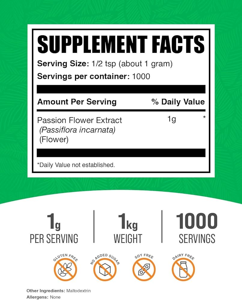 BulkSupplements.com Passion Flower Extract Powder - Passion Flower Supplement, Herbal Supplement - Gluten Free, 1g per Serving, 1kg (2.2 lbs) (Pack of 1)