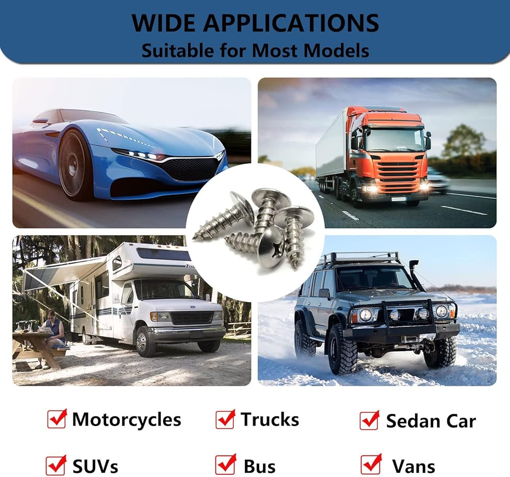 【WIDE COMPATIBILITY】: IMMK' s Stainless License Plate Screws Compatible with Most Domestic Cars and Trucks, Fits for all Subaru Models such as Outback, Forester, Impreza, Crosstrek, Ascent, Legacy, WRX, BRZ and B9 Tribeca. EXCEPT Toyota/Honda/Audi/BMW/Tesla