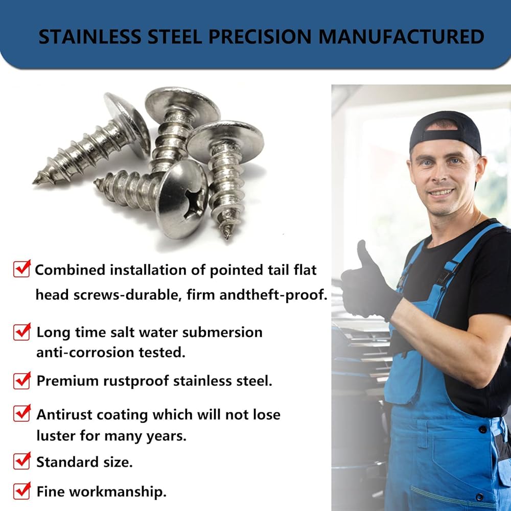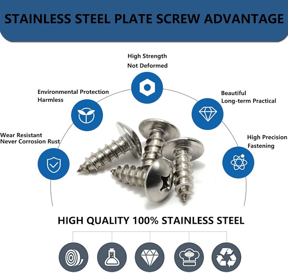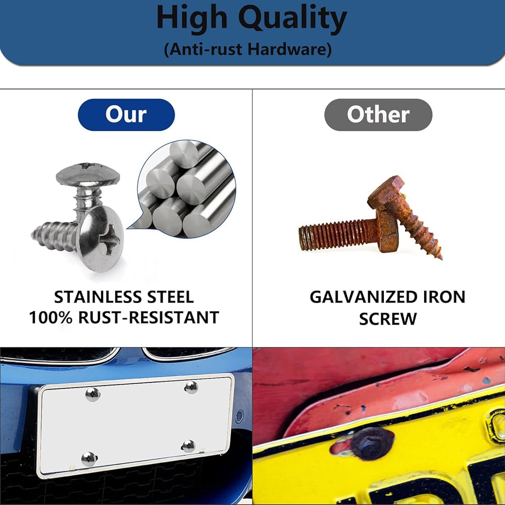 【PREMIUM MATERIAL】: IMMK' s Rustproof license plate screw are made from 100% stainless steel. License plate screws are sturdy, durable, anti-corrosion, weather-resistant, scratch-resistant, and effectively prevent rust. No rust, No oxidation with these grade 18-8 / A2 gtainless steel bolts and great look. These screws will outlast your car
