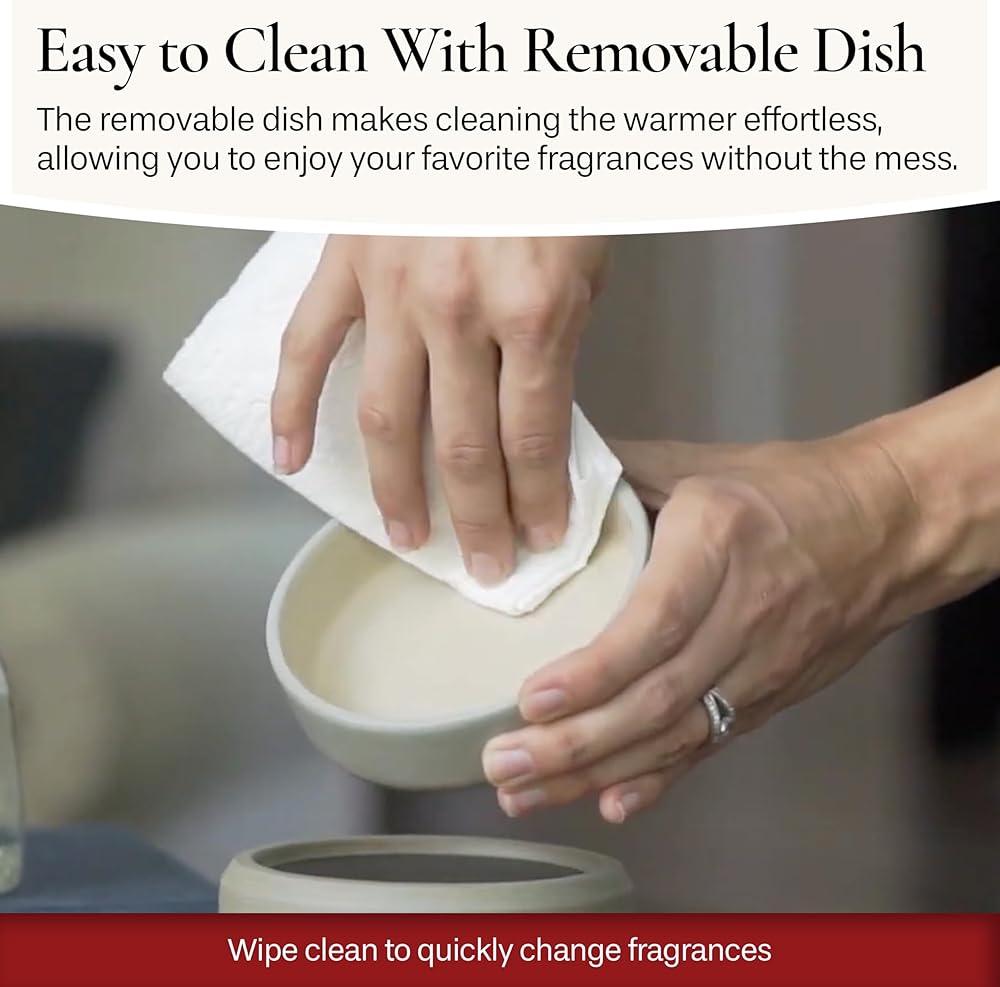 FEATURES: Removable dish for use with your favorite fragrance wax melts, bricks or tarts. Easy on/off dial on cord and an indicator light so you know when it is on.