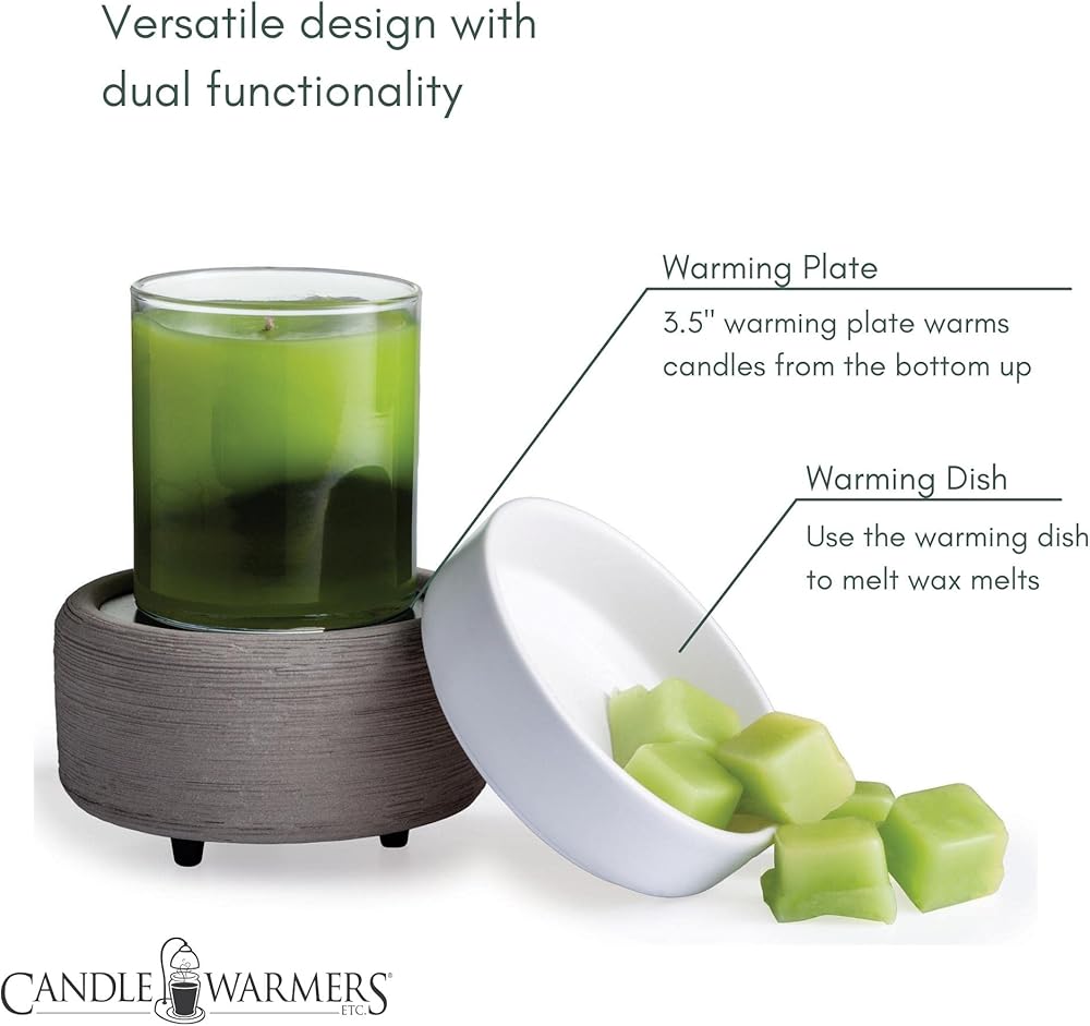 Candle Warmers Etc 2-in-1 Fragrance Warmers have the functionality and versatility to melt candles on the base, or wax melts using the included dish. Make a fashionable statement at home with styles that match any dcor. Recommended use with jar candles 10 oz or smaller. All of our products come with a one-year warranty. If you feel like your product has quit working, please contact us directly and we will help you!
