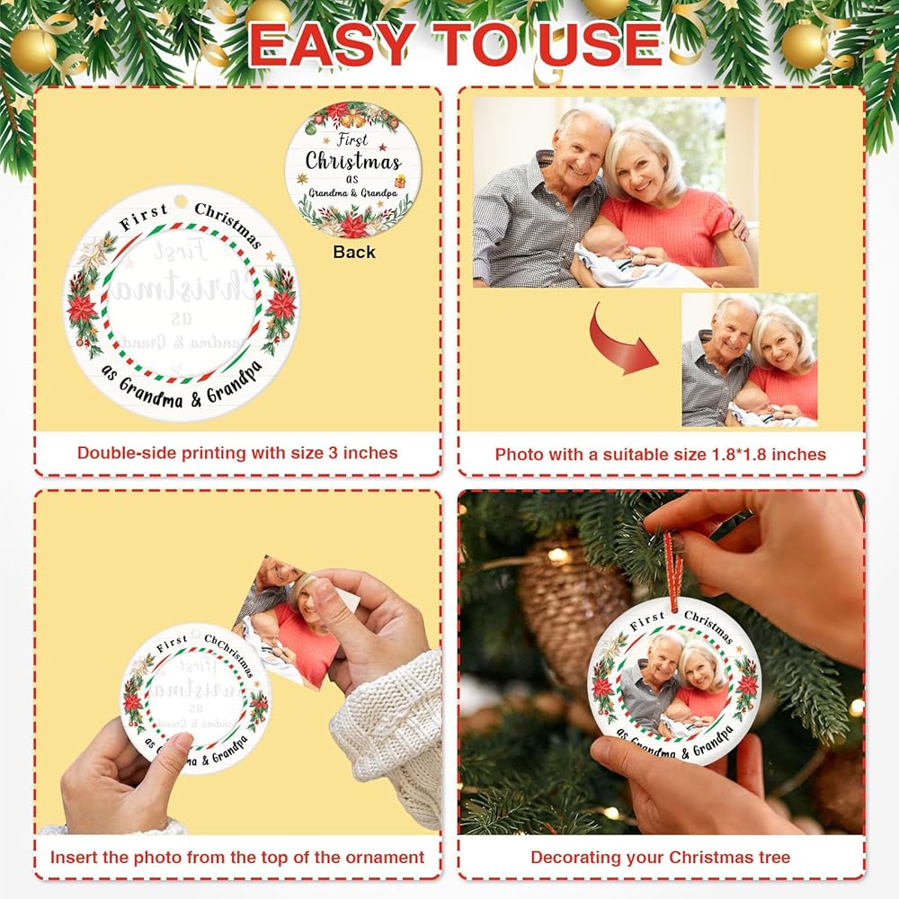 Easy to Use New Mom and Dad Ornament: This first christmas as mom and dad Christmas photo ornament is very convenient for you to use. Take off the ribbon from the top and insert baby or family photo into it, which could be fixed well and keep your photo many years.