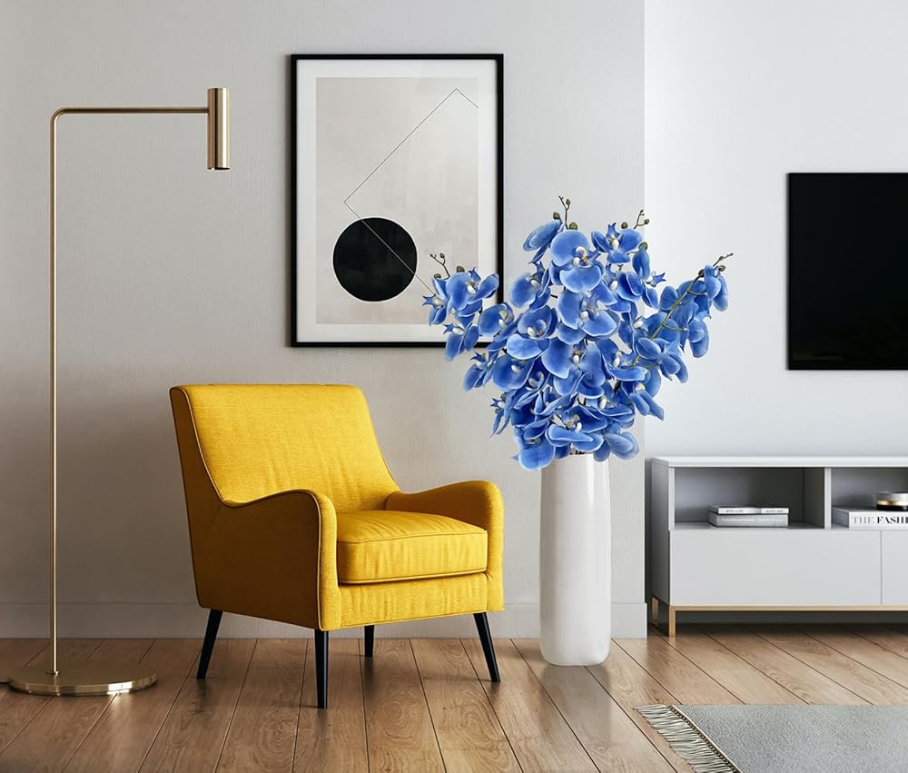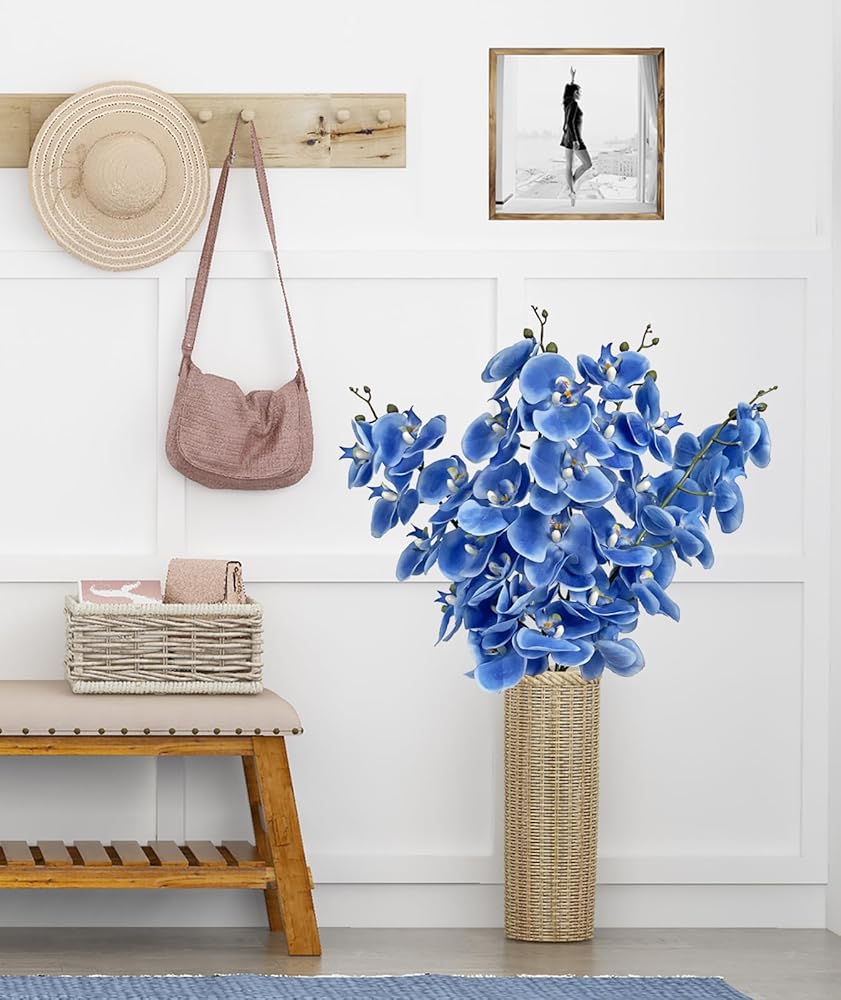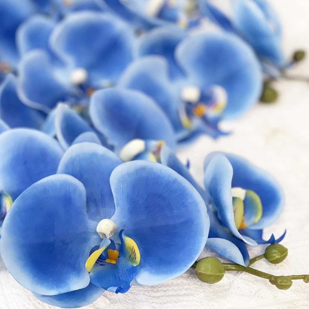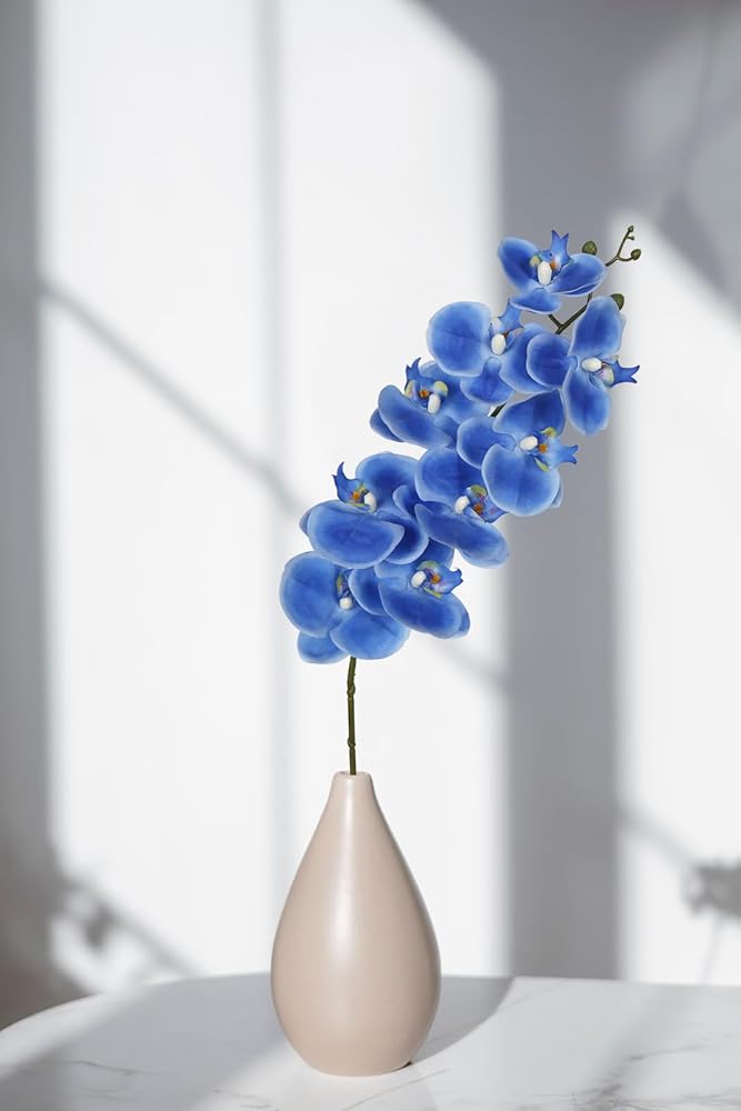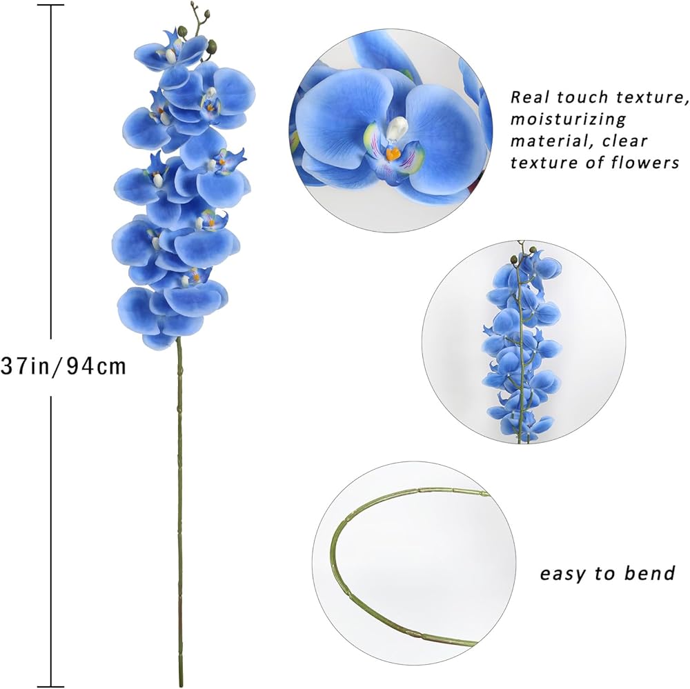 IPOPU 37 in Artificial Orchids Flowers Real Touch Artificial Flowers Faux Orchid Latex Silk 4 pcs Long Stem Artificial Flowers for Tall Vase for Wedding Home Party Décor(Blue)