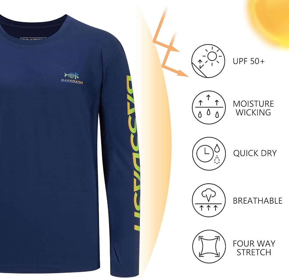 Enjoy ultimate protection and style with our long sleeve graphic fishing shirt made from UPF 50+ sun protection fabric that shields you from harmful UVA/UVB rays. The unique fish graphic prints on the back make a statement whether you're on the water or relaxing on the shore. With thumb holes for an extra coverage and mesh panels for enhanced breathability, you'll stay cool and comfortable during all your adventures. Ideal for daily wear and various outdoor activities, this shirt is the perfect gift for any fishing enthusiast.