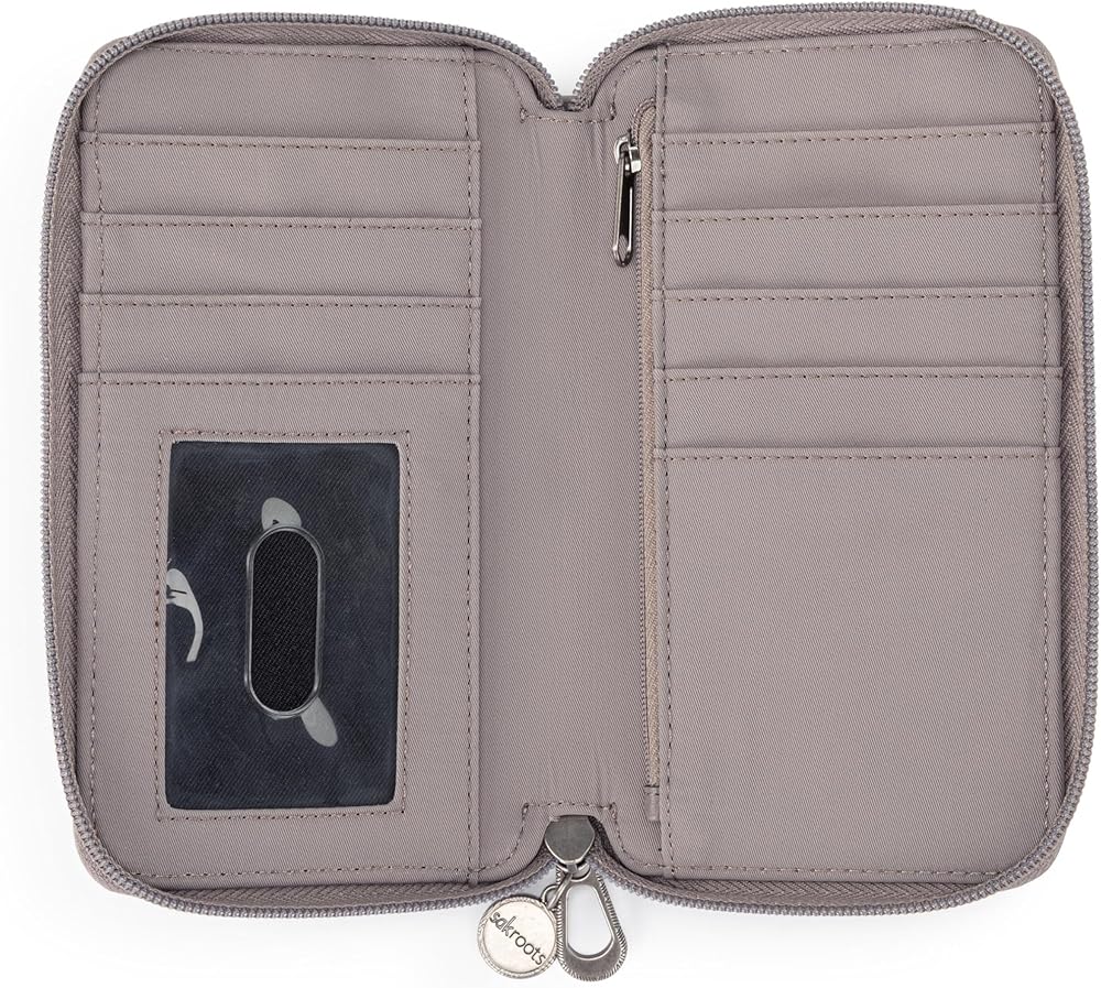 PERFECT FOR EVERYDAY TRAVEL: Features a main zipper closure, detachable wristlet strap, removable crossbody strap, front phone pocket with snap closure, & an interior with eight credit card slots, clear ID window, side slit pocket & a zipper pocket