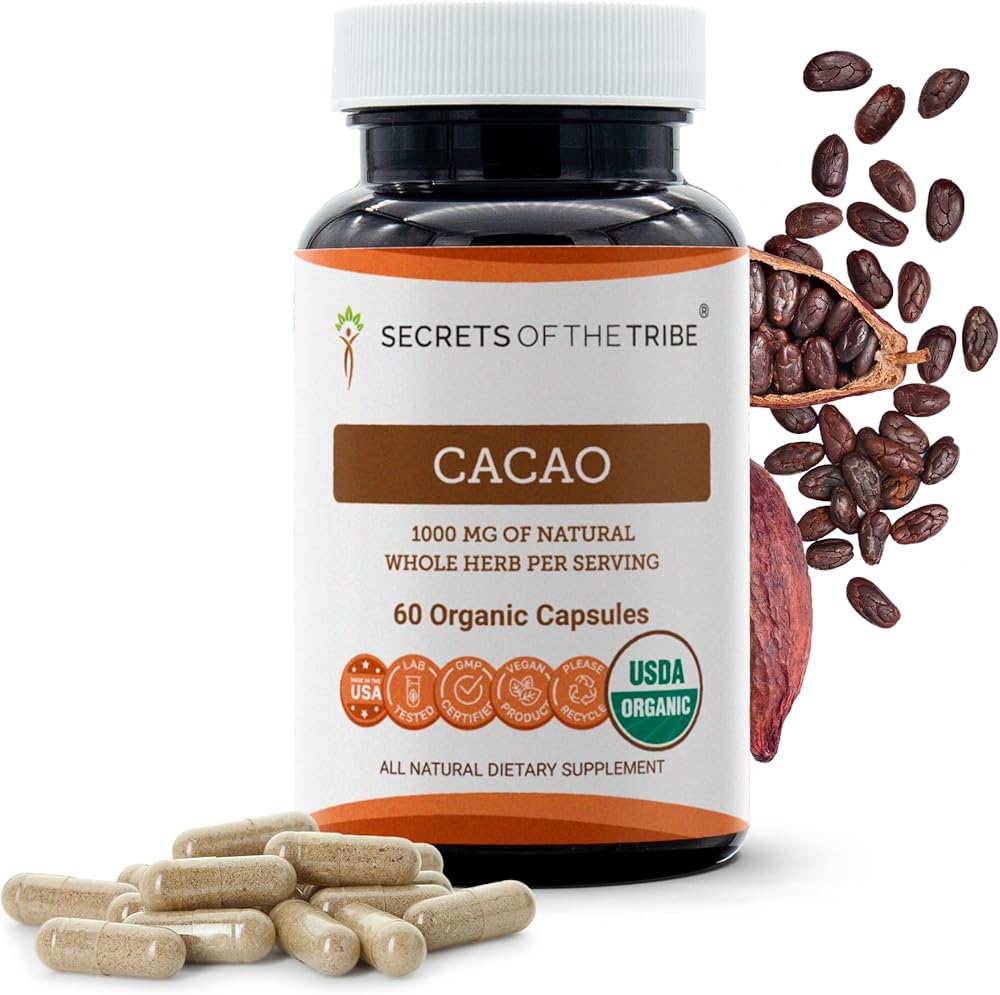 Secrets of the Tribe Cacao 60 Capsules, 1000 mg, USDA Organic Cacao (Theobroma Cacao) Dried Raw Beans (60 Capsules)