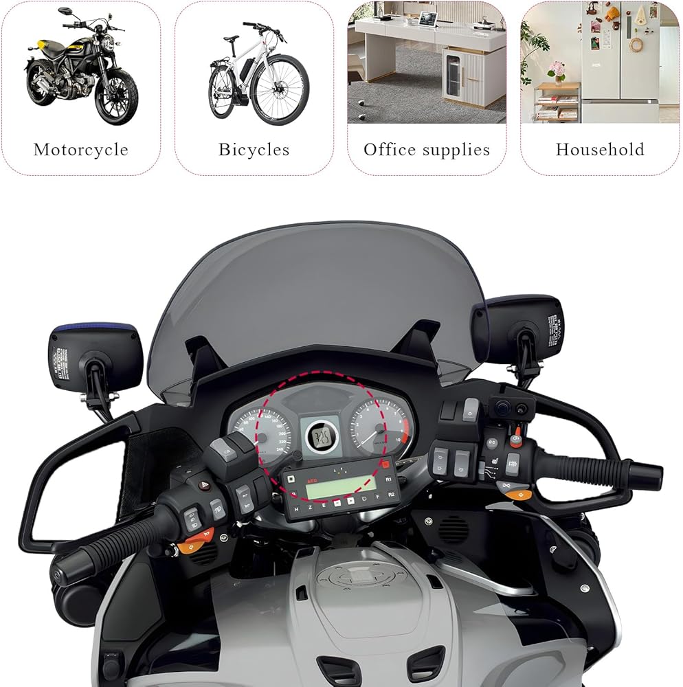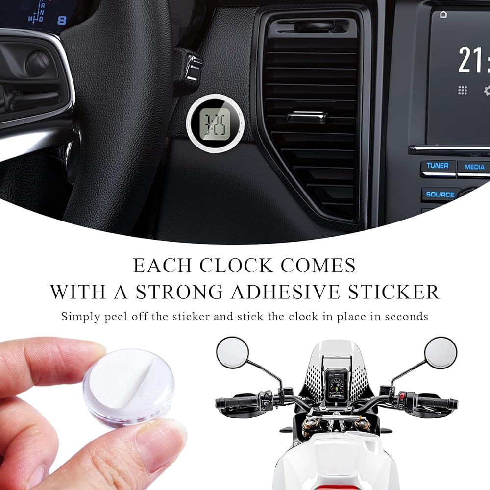 【Widely Applied】: On the one hand, this mini clock is suitable for all kinds of vehicles such as motorcycles, cars, trucks, dirt bikes, scooters, electric bikes and so on. On the other hand, it can also be mounted on walls, glass, tables, laptops and other items if you need it.