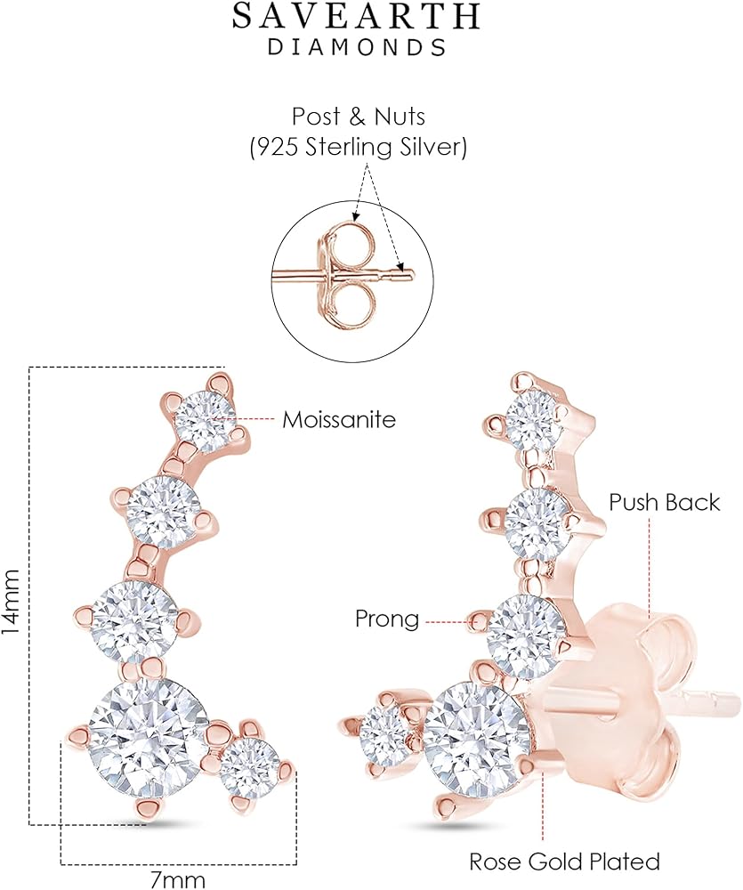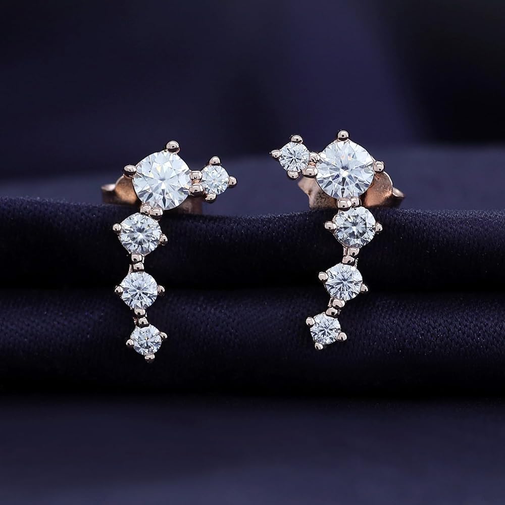 Gemstone : Round Moissanite Diamond Having Clarity Of VVS1, Setting : Prongs Setting Type, Total Carat Weight : 0.50 Carat (Cttw), Very Good Cut, This Climber earrings secure with Push Back to ensure secure grip on ear lob & Comfortable to wear.