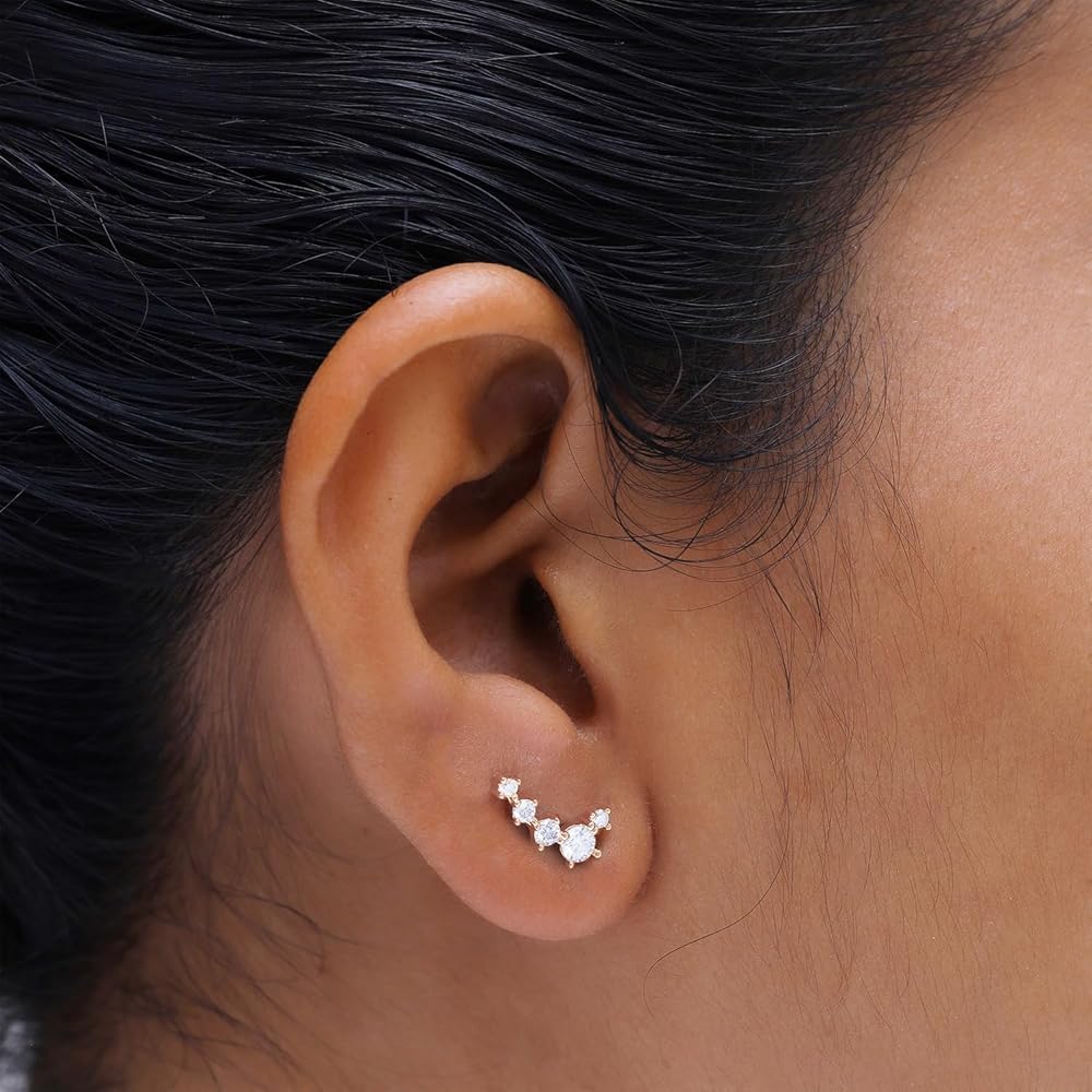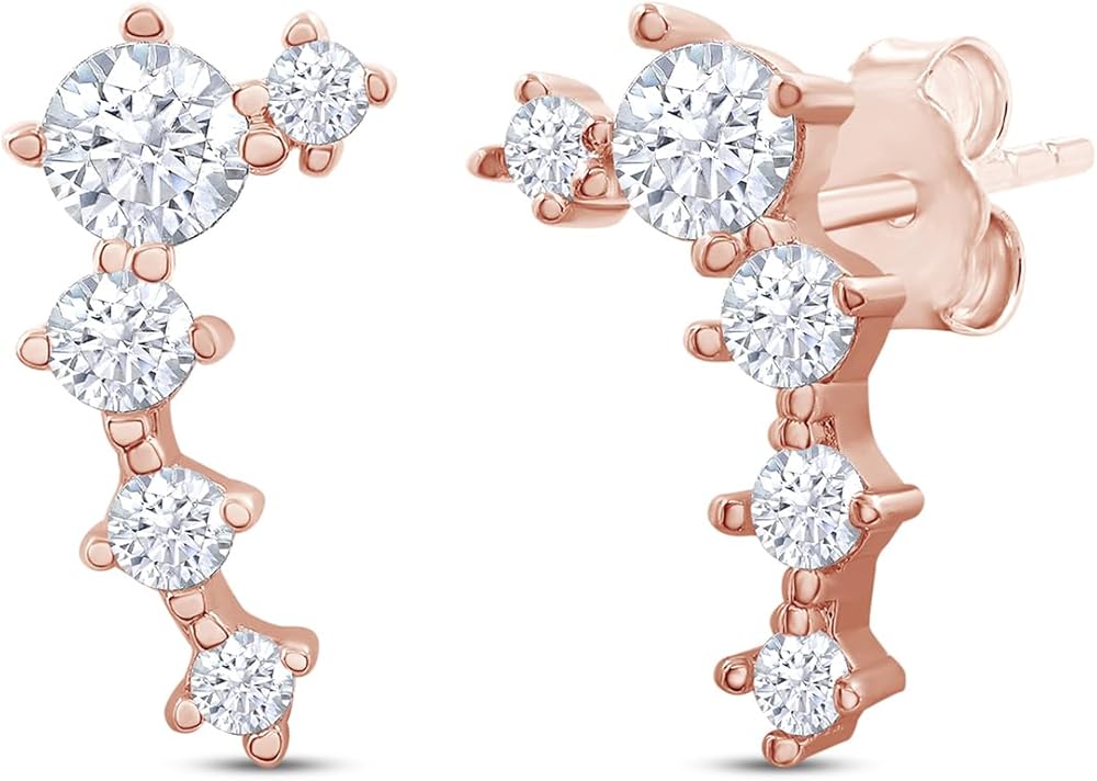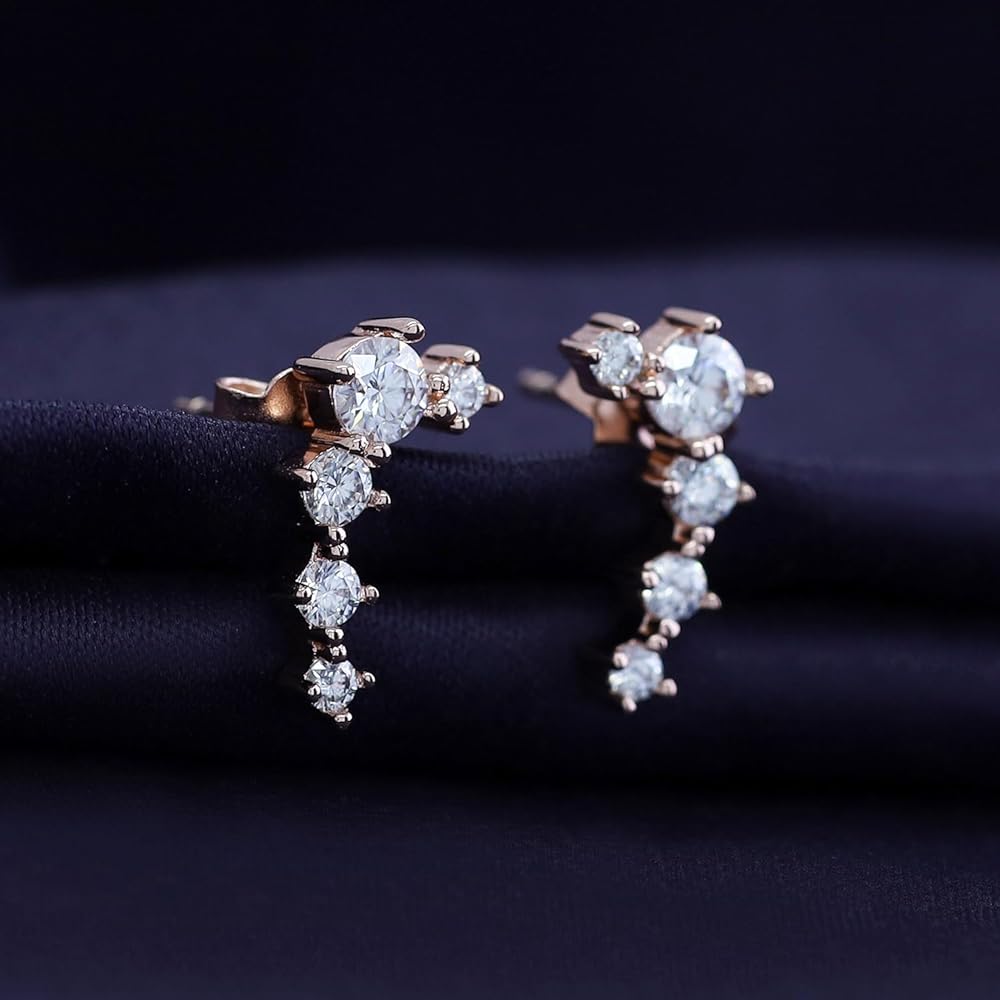 Jewelry has the power to be this one little thing that can make you feel unique, 18k Gold Plated Ear Crawler Earrings 0.50 Carat (ctw) Moissanite Diamond 5-Stone Climber Earrings for Women | Trendy Jewelry Gifts For Her Push Back Earrings. Absolutely a great gift to express your love for your mother, friend, wife, valentine, family or friend. Great gifts on Mother 's Day, Wedding, Anniversary day, Valentine's Day or Christmas Day