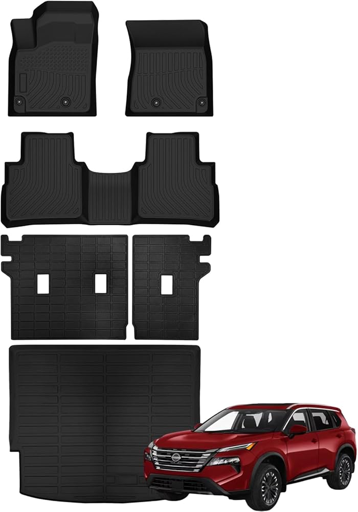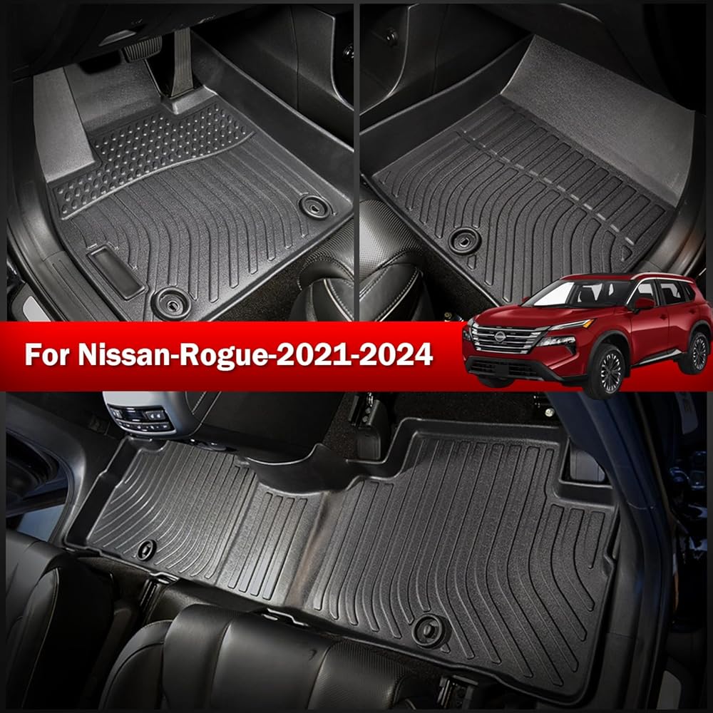 Marretoo for Nissan Rogue 2021-2024 سجادات الأرضية وبطانة البضائع مع مسند الظهر مجموعة كاملة من الحماية من جميع الأحوال الجوية TPE لملحقات Nissan Rogue عالية الجودة مقاومة للماء وشديدة التحمل