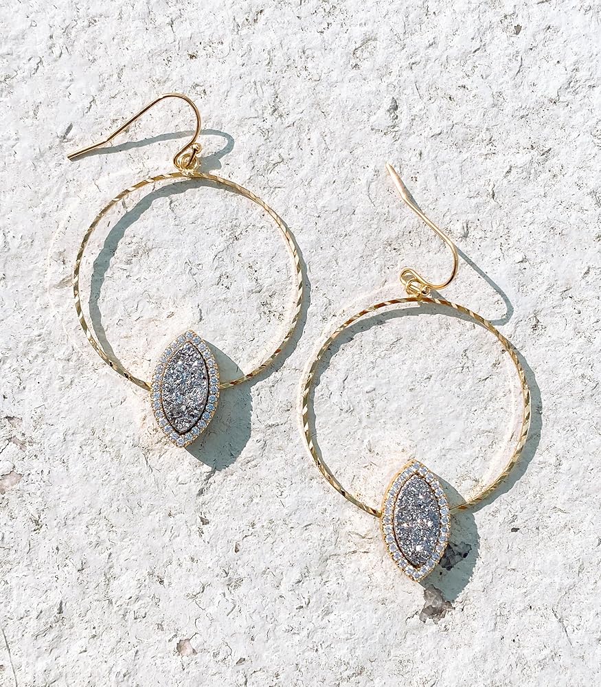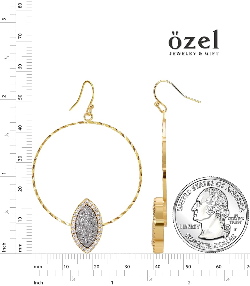 Unique Design: These stunning dangle earrings feature a twisted hoop design with an eye-catching marquise-shaped turquoise druzy stone centerpiece.