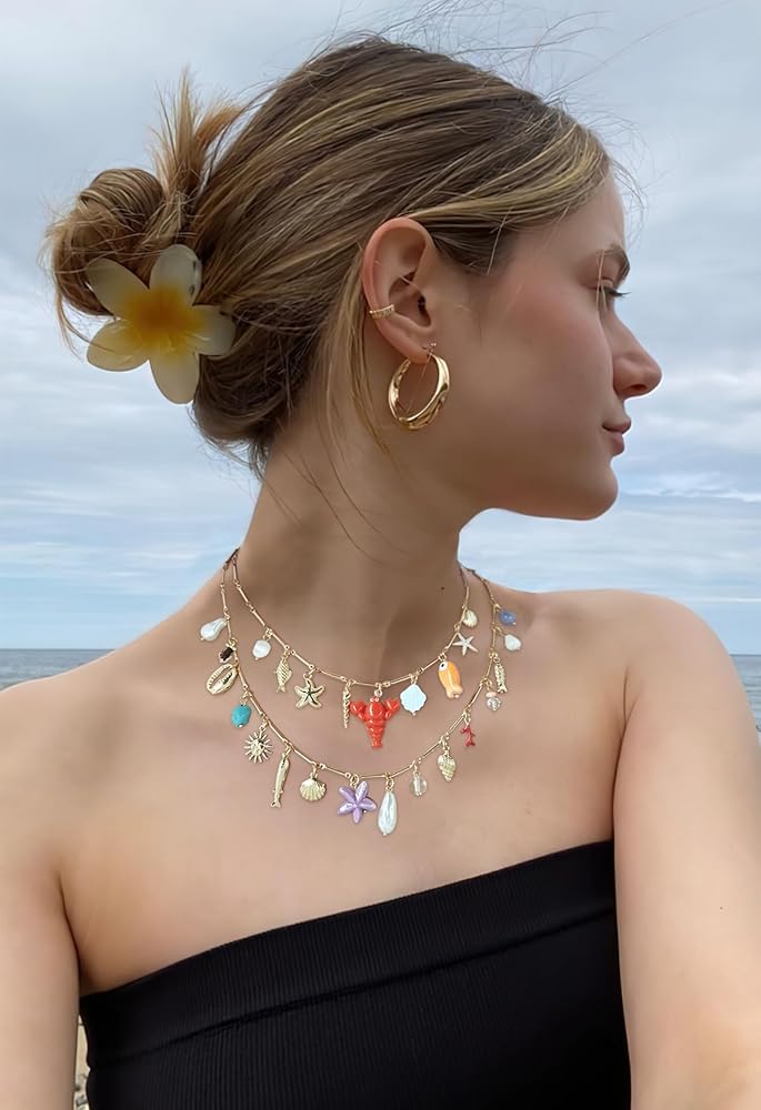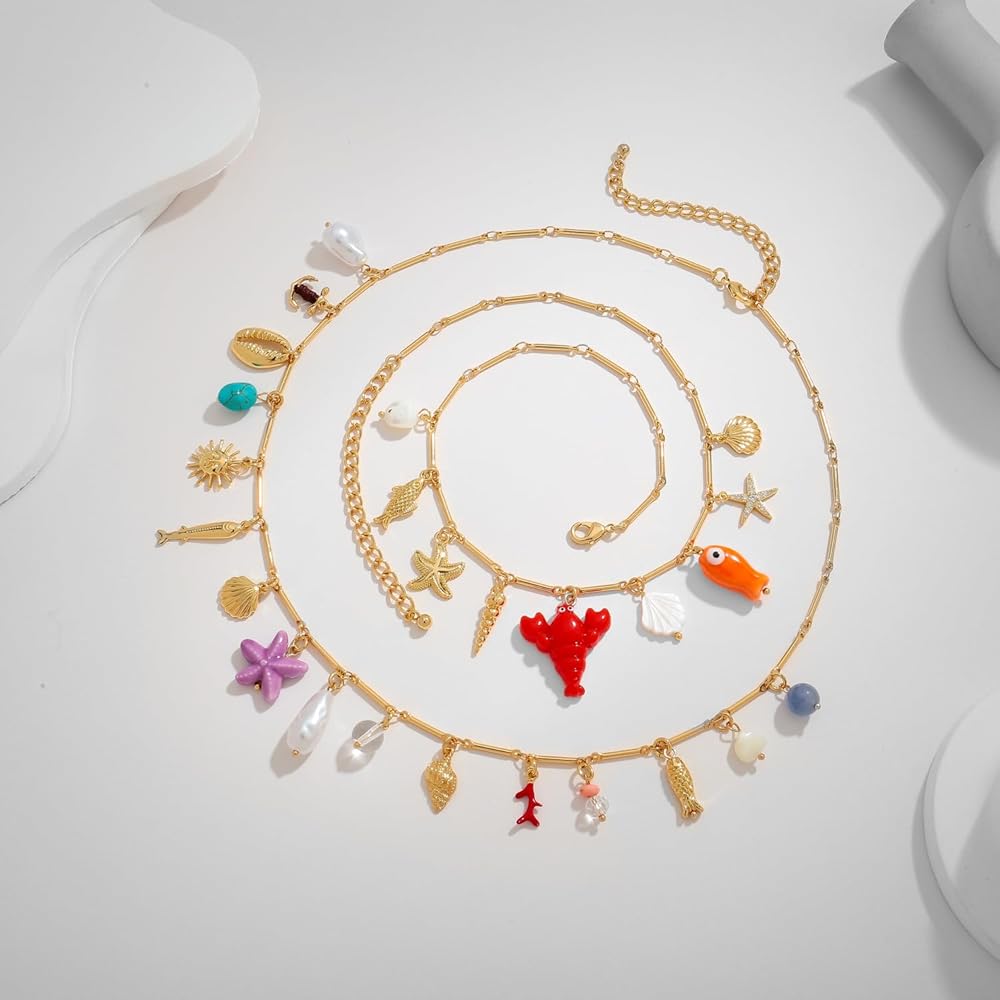 Versatile Fashion Jewelry : Whether paired with a summer beach dress, casual daily outfits, or an evening gown, this starfish necklace effortlessly complements any style. The colorful charms design highlights unique charm, making it an essential fashion piece for both beach vacations and city life.