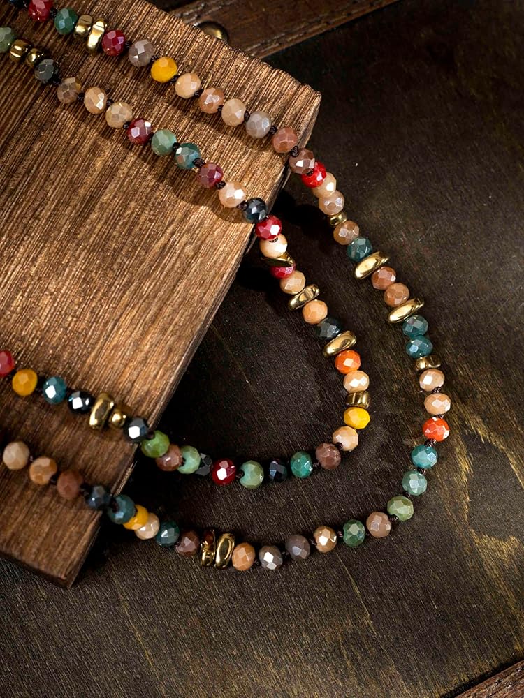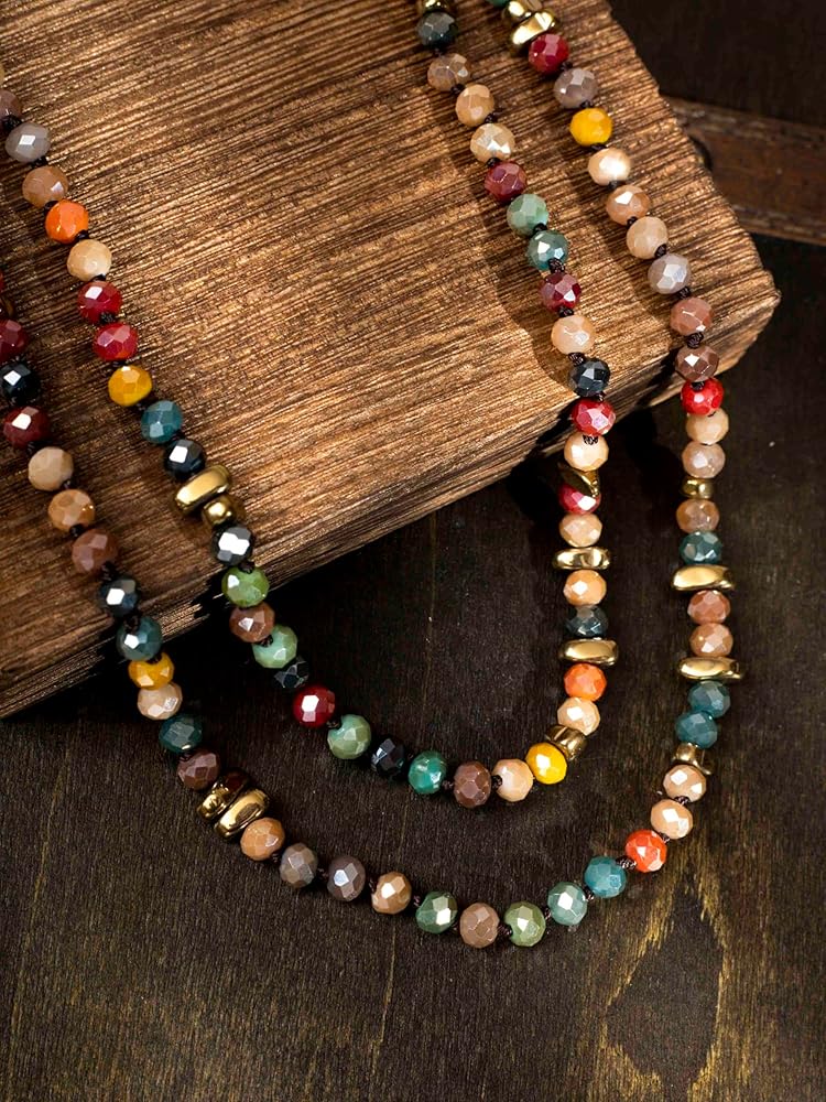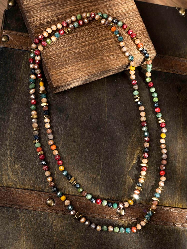Elevate your bohemian style with this colorful seed beaded long necklace from MINACHI. Crafted with coated reflective glass beads, this chunky costume jewelry piece exudes vintage vibes. The vibrant colors and intricate beadwork create a striking visual appeal that will instantly uplift any outfit. Measuring approximately 45 inches in length, this necklace offers a versatile fit to complement various necklines. Whether you're dressing up for a festival or adding a touch of flair to your everyday look, this beaded necklace is a must-have accessory for fashion-forward women who appreciate unique and eye-catching designs. Embrace your free-spirited side with this captivating piece.