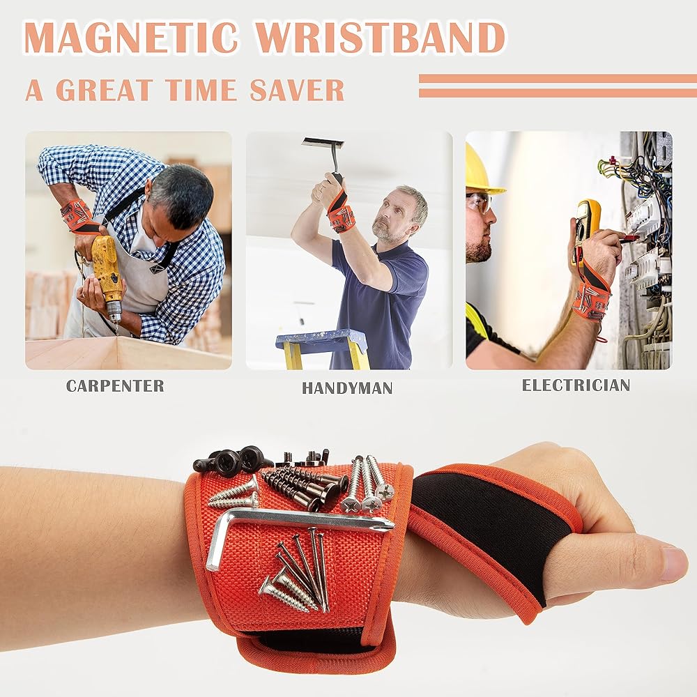 Recommended Use: The magnetic wristband is designed for holding small items such as nails, screws, drill bits, nuts, bolts and fasteners.