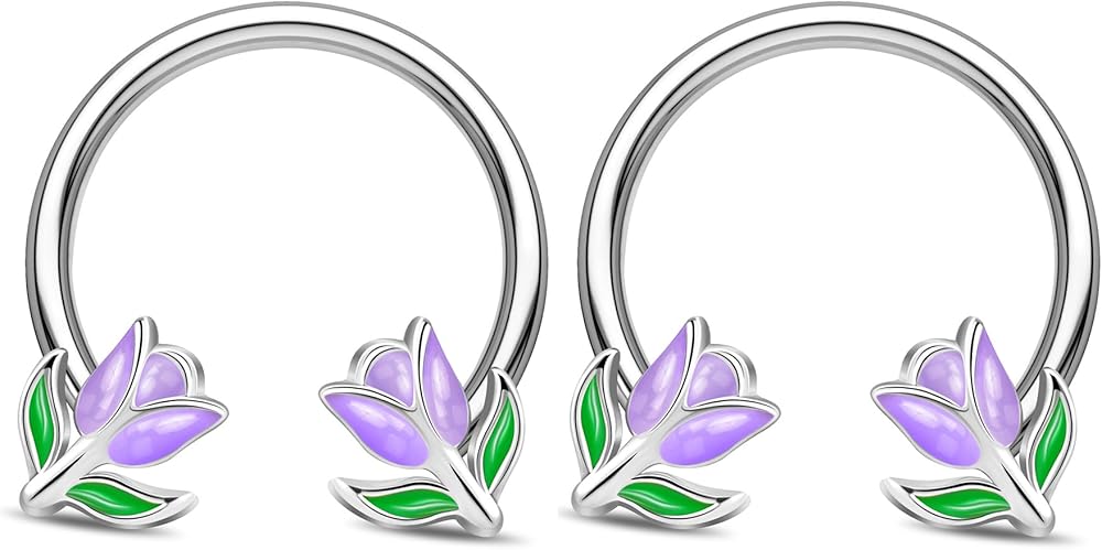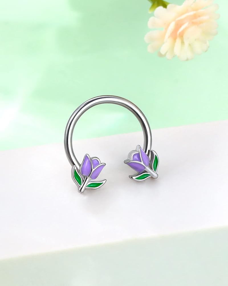 Product Introduction:Designed with captivating tulip flowers, this stainless steel captive bead ring (CBR) is available in gold and steel bars; Choose from white, purple, or pink tulip decorations to add a pop of color to your look