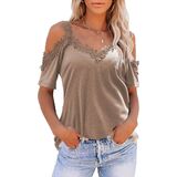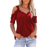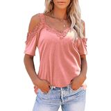 Features: a sexy halter neck, lace trim, cold shoulder design, open shoulder, short sleeves, loose fit blouse, off the shoulder sweatshirts, and a special hollowed out cross shoulder design that gives a sexy look. The solid color of the top makes it fashionable and comfortable.