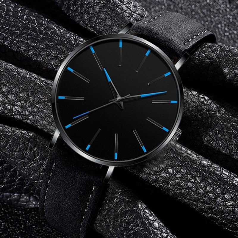 CLASSIC CASUAL DESIGN -- Analog fashion dress watch casual design, leather band, 3D scale time mark with the simplicity of business casual, bring men back to the classic.