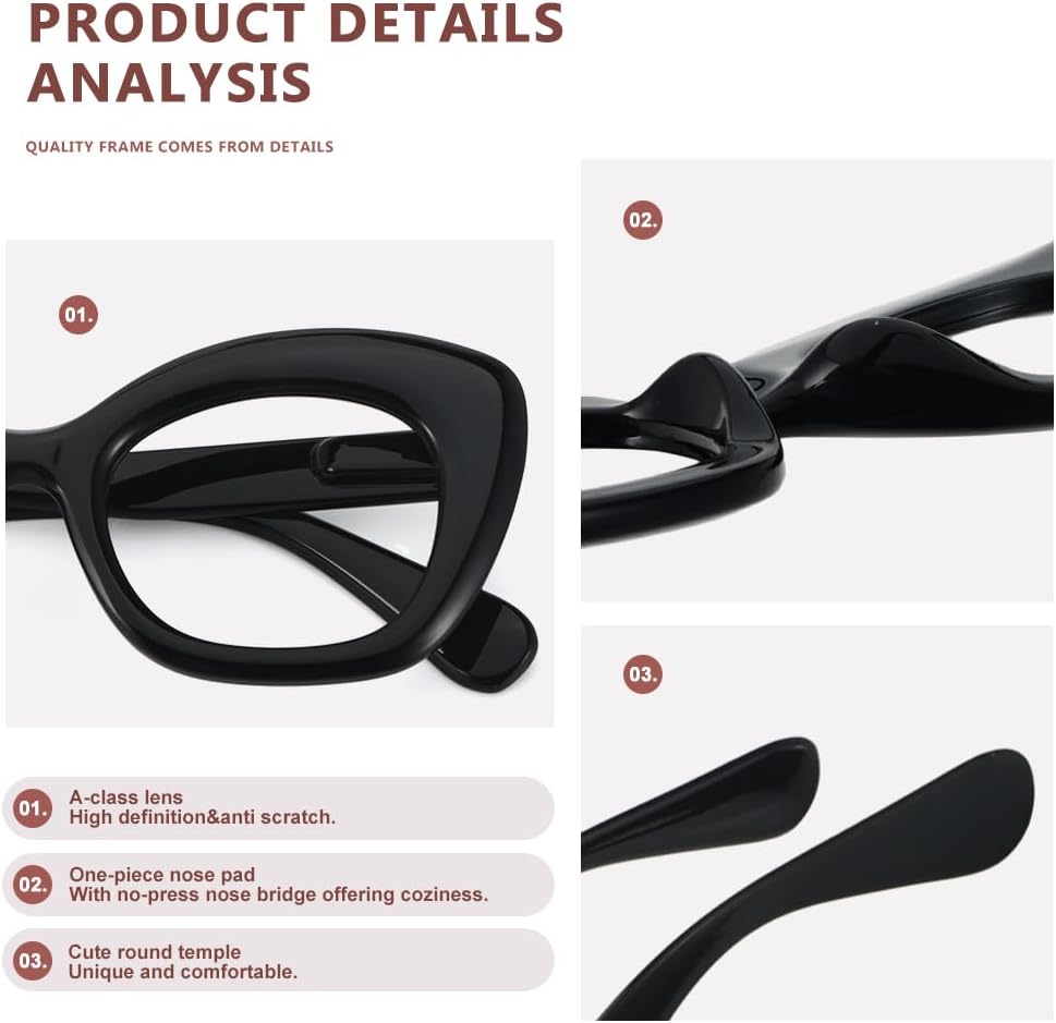 Package- Comes with paper box including cleaning clothing and glasses pouch. Rest easy, our oversized cat eye reading glasses for women undergo rigorous inspection before shipment.