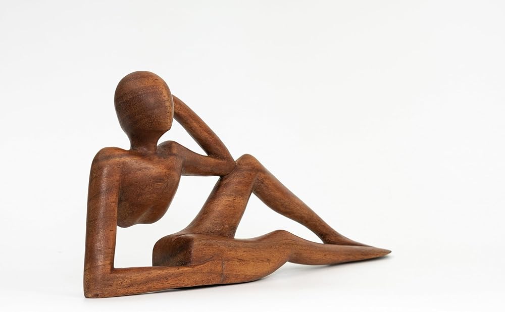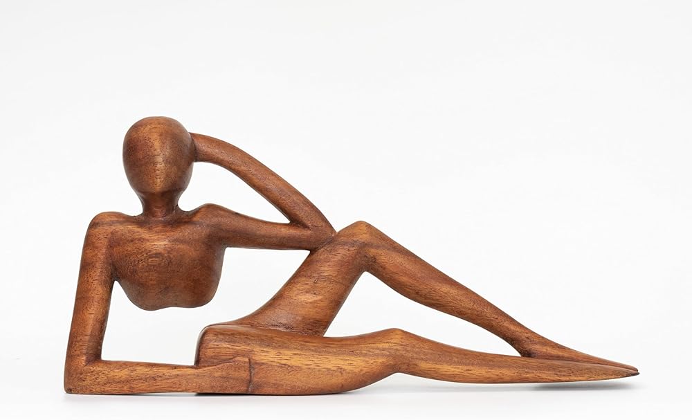 Get in touch with your ability to take in a deep breath and relax in the moment. This relaxing man carved statue will be the perfect reminder to just let go and unwind in your busy day. The figure connects at the arms and knees with a gap in the torso, creating a very unique abstract look. Made from suar wood, this figure is beautifully detailed and no two are alike in markings. Each statue is 12 inches wide and 6 inches tall for the perfect size accent piece. These make amazing gifts for loved ones on any occasion.