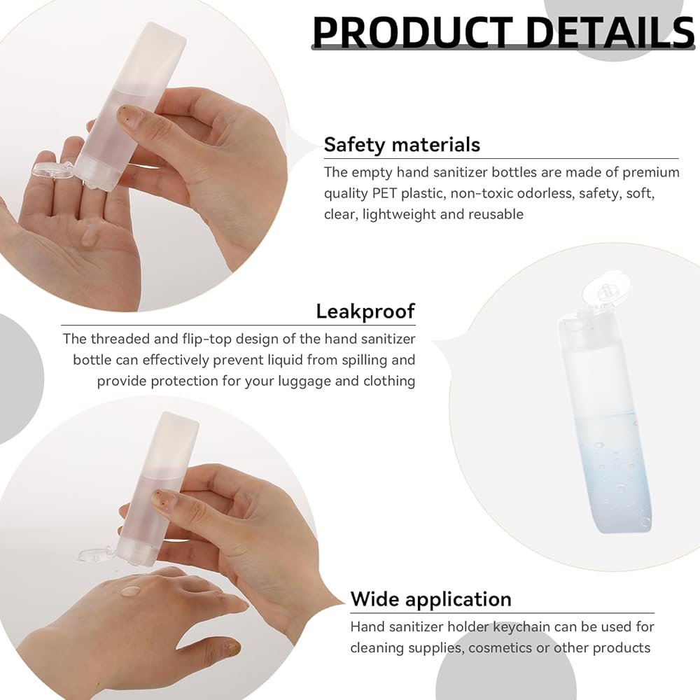 VERSATILE APPLICATION: These travel liquid container can easily carry and dispense a variety of liquids such as hand creams, cleansers, shampoos and body washes. They provide a compact and portable solution for your travel toiletry needs.