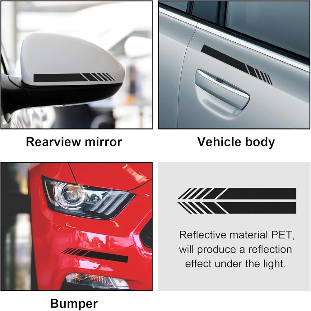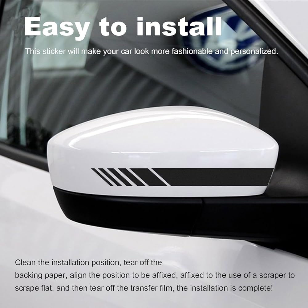 【Widely Application】: The application range of car stickers is extremely wide. You can stick them on your car's rearview mirror, bumper, body and so on to achieve a reflective effect. In addition, the 2 pieces package is suitable for both left and right sides of your car.