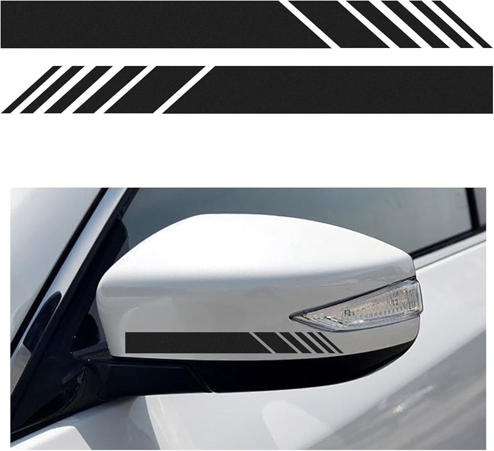 Augeny 2 PCS Car Rear View Mirror Stickers, Waterproof Vinyl Auto Side Rearview Mirror Stripes, Universal Reflective Anti-Collision Striped Warning Decal for Most Vehicles (Black)