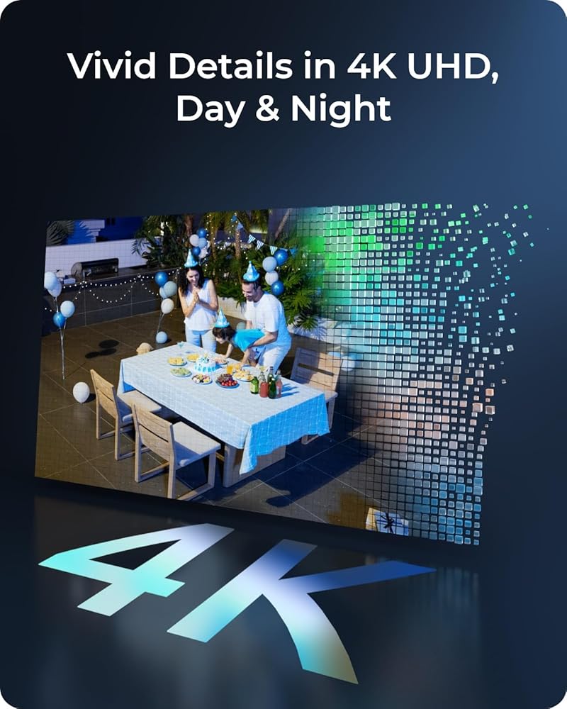 4K 8MP Color Vision Day & Night: The battery security camera is upgraded to 4K 8MP ultra-high definition, providing unparalled visual experience for you. The built-in motion spotlight helps you see every important color detail even at night.