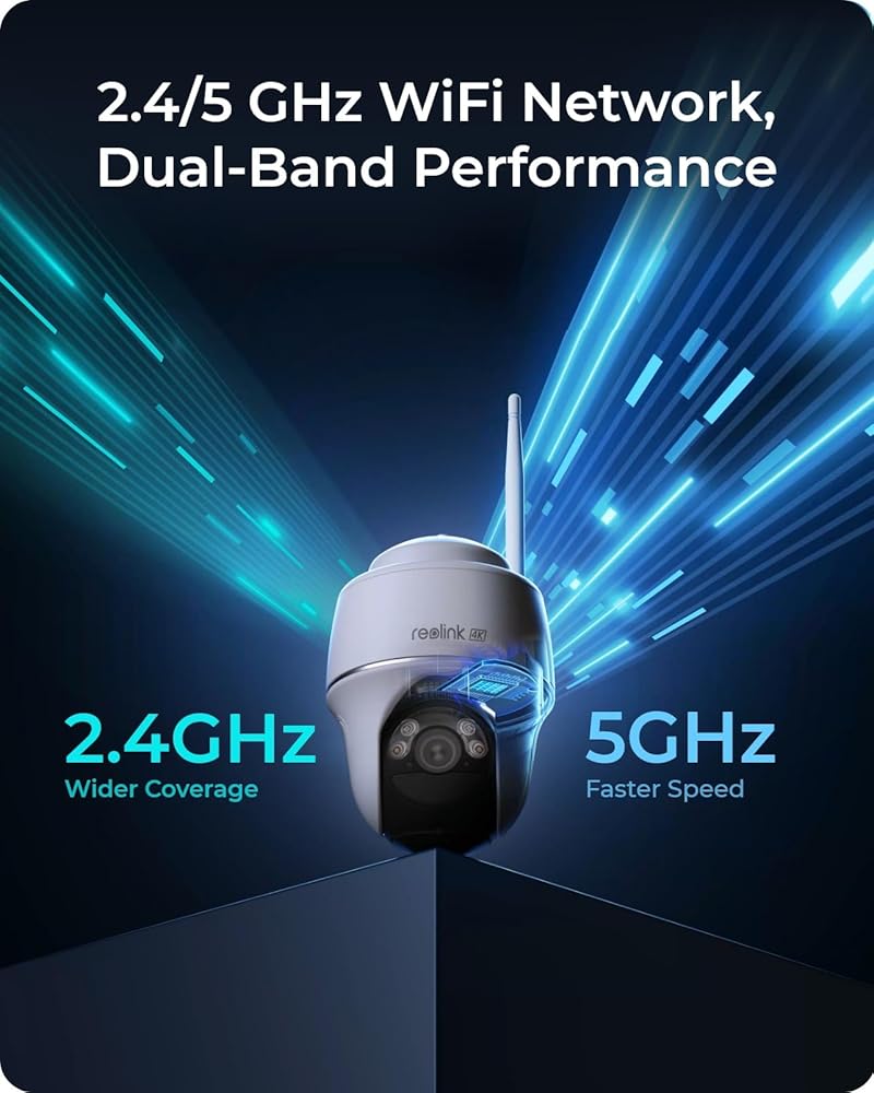 REOLINK First 4K Solar Security Cameras Wireless Outdoor, Argus PT Ultra+Solar Panel, 360° Pan Tilt Auto-Tracking, 8MP Color Night Vision, 2.4/5 GHz Wi-Fi 6, No Subscriptions, Home Hub Compatible