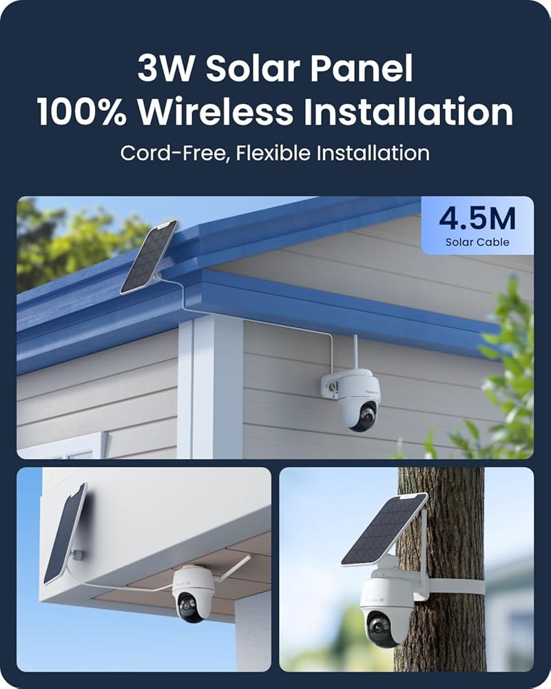 100% Wire-Free Easy Setup: The camera works on 2.4/5GHz WiFi and continuously powered by the new 6W solar panel, freeing you from frequent battery charging hassles. With this easy-to-install wireless camera, you can build up your independent security system within minutes.