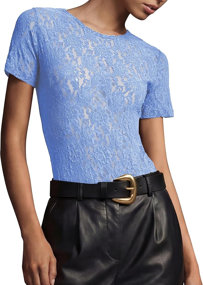 Our sheer short sleeve tops for women is made of comfortable, stretchy and breathable material, providing all-day comfort and a soft touch against the skin.
