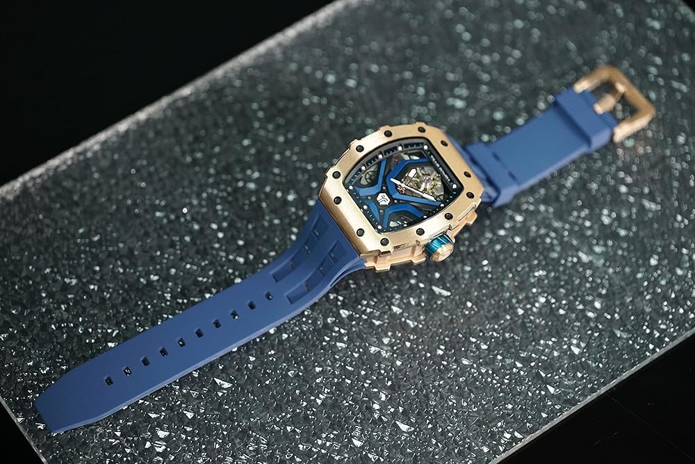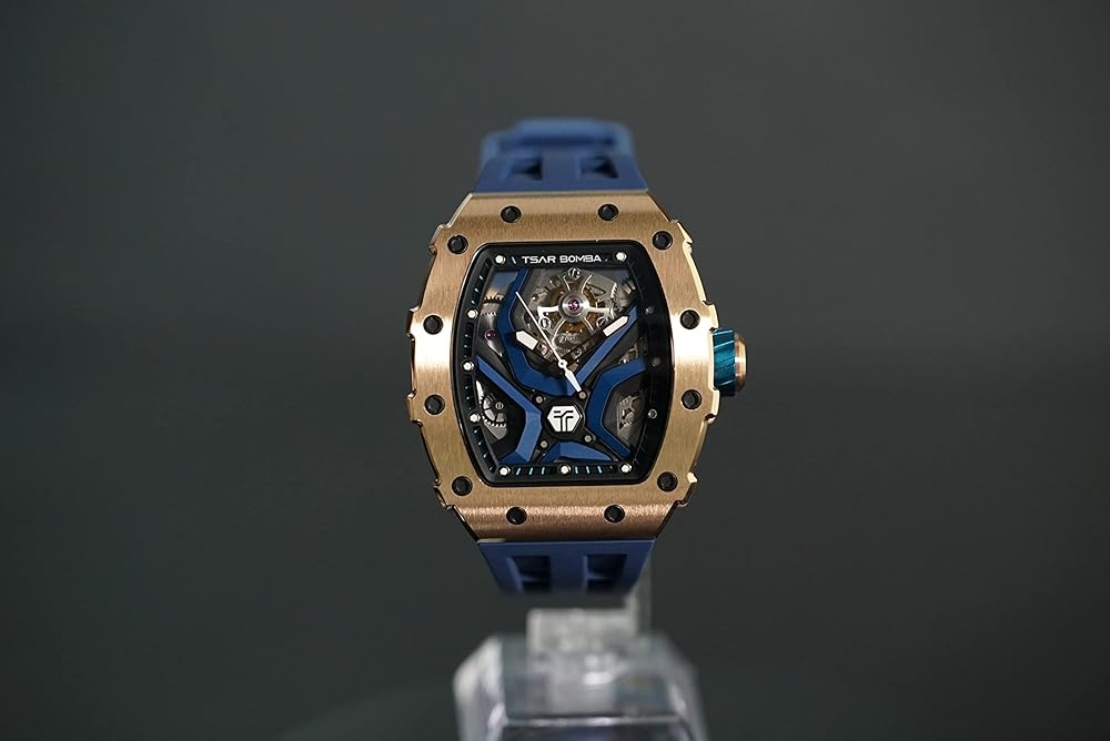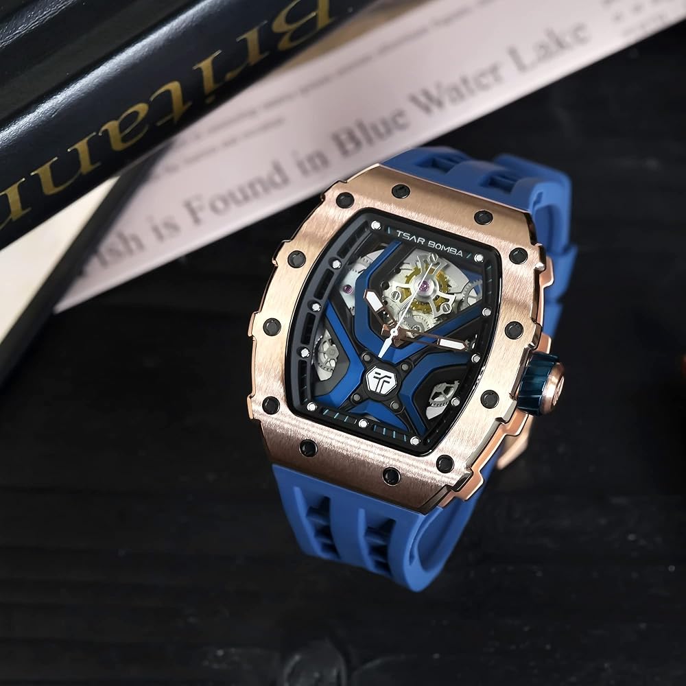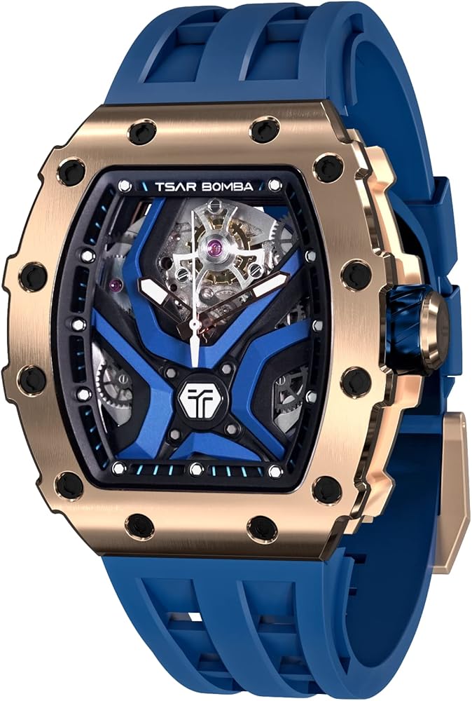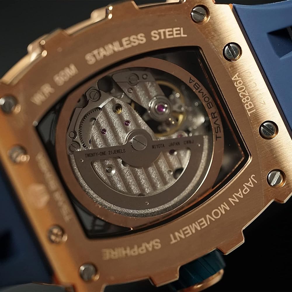 [TSAR BOMBA-Mechanical Temptation] The TSAR BOMBA men's watch adopts a novel double-arch bridge tonneau-shaped case design combined with a mechanical skeleton design, which fits the wrist very well and has a fashion sense. The mirror is made of artificial sapphire glass, which fits perfectly with the 316L stainless steel case. At the same time, the A-level luminous function also allows you to see the time at night without hurting your eyes.