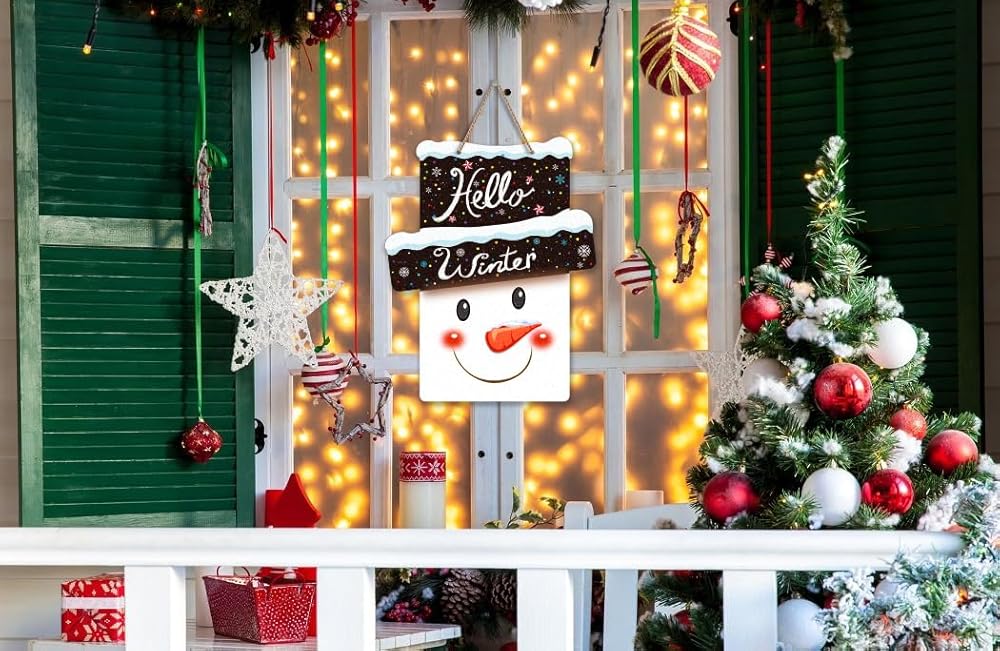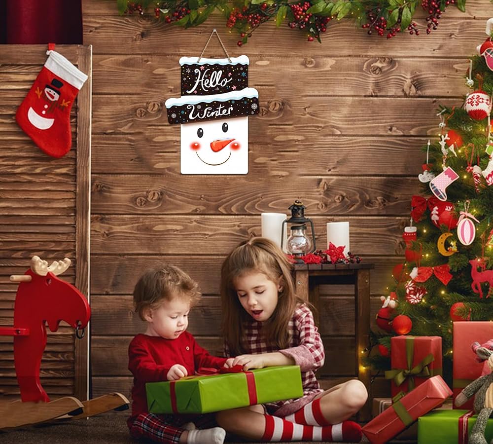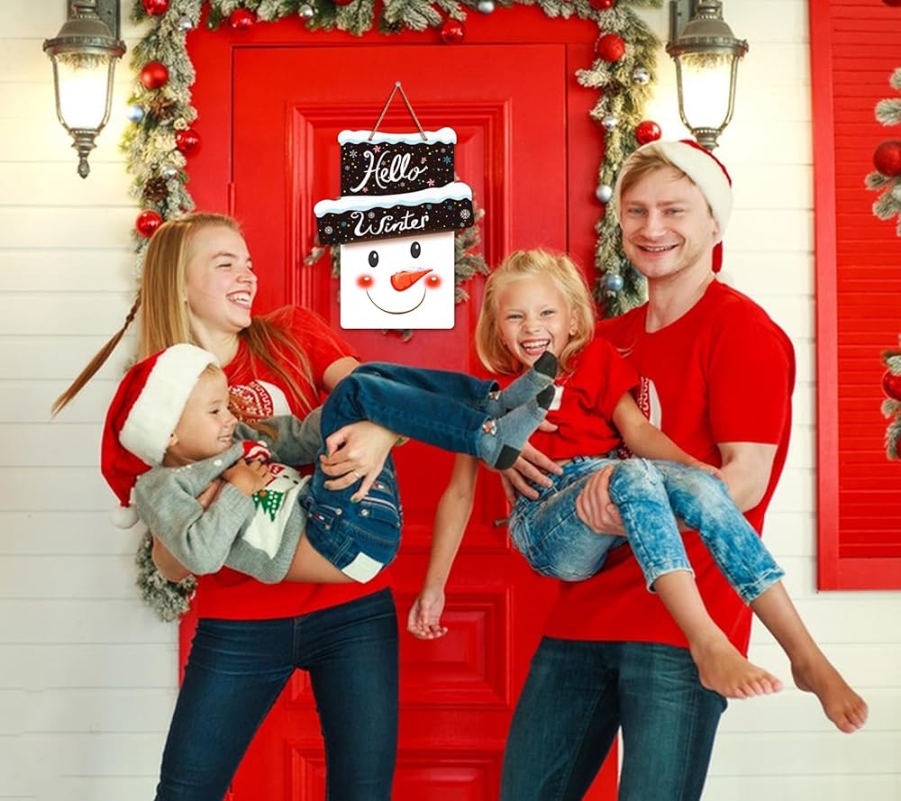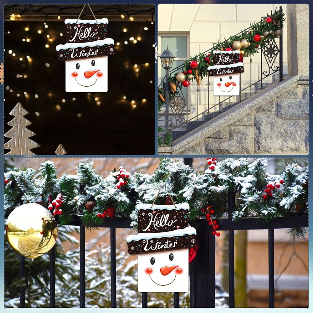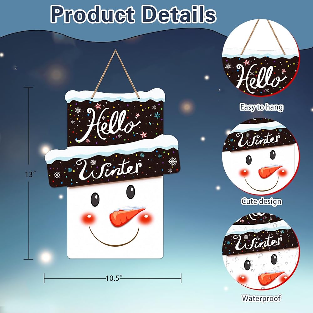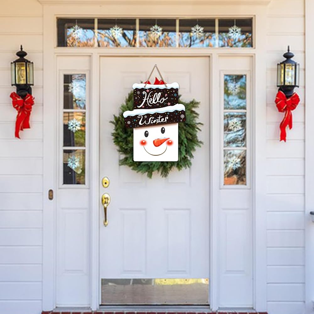 【Winter Snowmen Porch Sign】: Christmas wreaths wall hanging sign adopts a unique and cute design, featuring Christmas elements such as snowmen and snowflakes, printed with "Hello Winter". The interesting design makes this Christmas snowman hanging sign.
