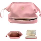 -Makeup organizer bag is made of premium PU leather, waterproof, compact, portable, soft, lightweight, anti-wear, tough and smooth.