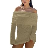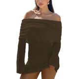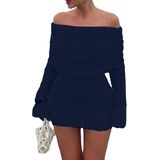 Chic Design: The cozy dressy going out vacation dress for women with long sleeve,strapless,fold over collar,mini dress,solid color,bodycon,slim fit.The strapless dress for women summer makes you more attractive,charming and fashion