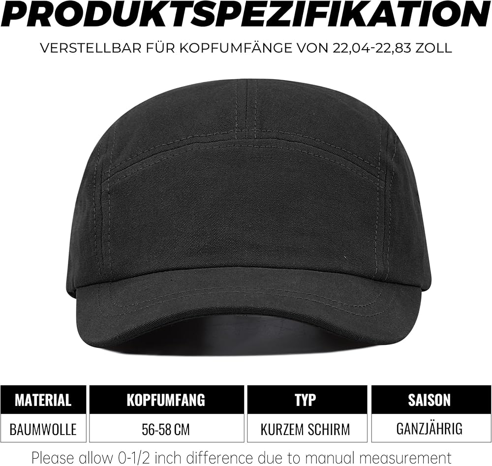 Suitable Size: The brim length is 5cm/1.96 inches, which is a short brim but is enough to provide you with daily sun protection; The hat circumference is 56cm-58cm/22-22.8inches, which is a head circumference suitable for most adults. But it doesn't matter if your head circumference is relatively large. The adjustable buckle on the back of the hat allows you to freely adjust the size and give you the best fit.