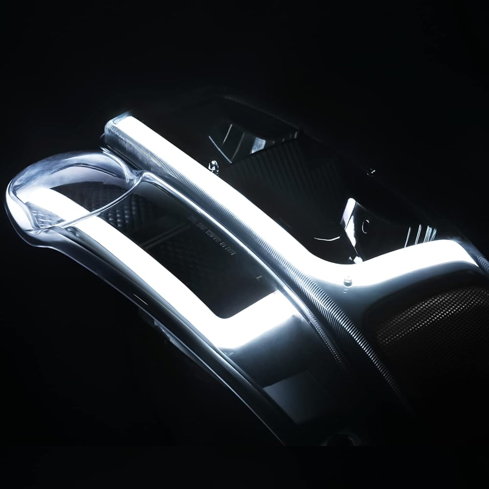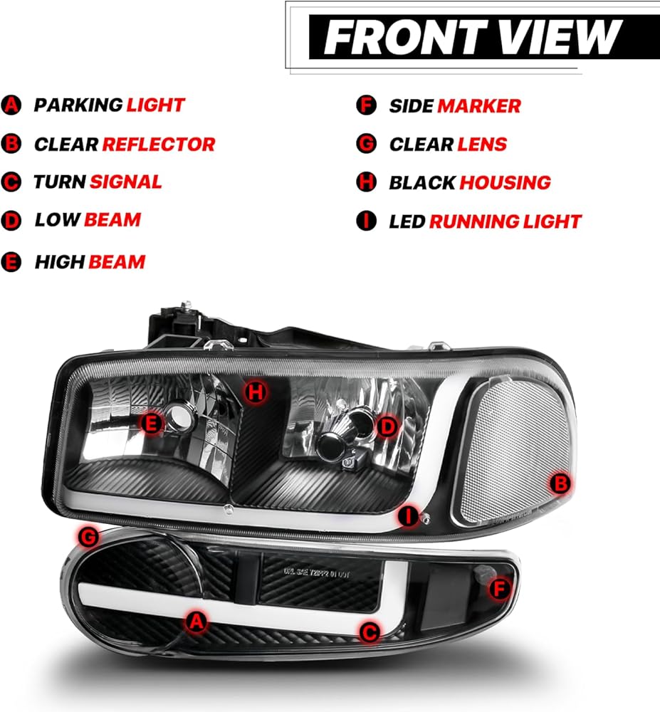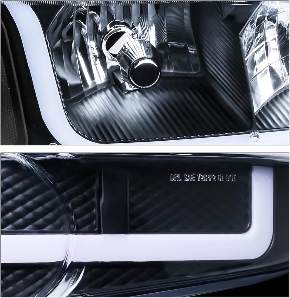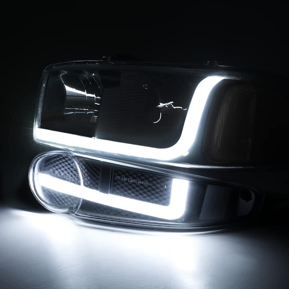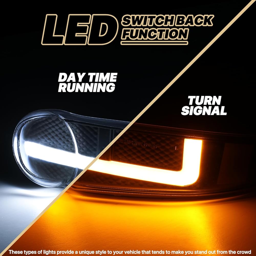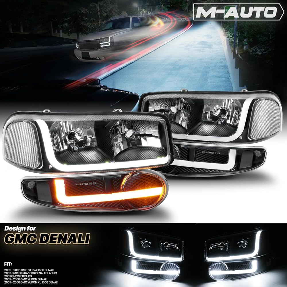 M-AUTO Switchback LED Tube DRL Headlights Assembly - Black, Compatible with 2001-06 GMC Sierra 1500 Denali, 07 Sierra 1500 Classic, 01-06 Yukon Denali/Xl 1500