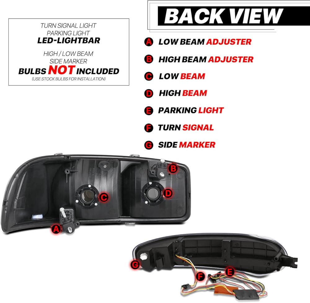 - No modification or drilling needed; Complete set of headlights (Driver and Passenger side)