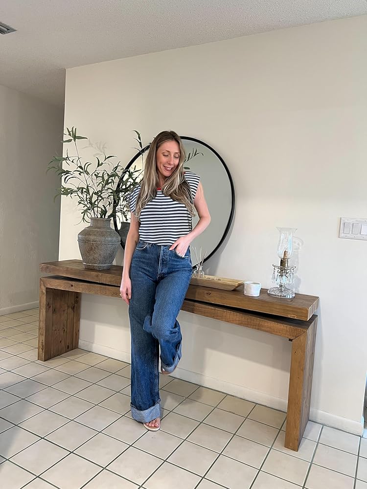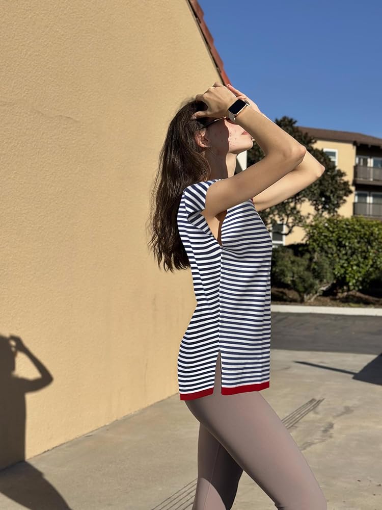Design: Sweater vest, cap sleeve, slightly rolled crew neck, splited hemline, long straight, full of stretch, classic solid color, multiple colors to choose from. Simple, casual and trendy, it will be the best choice for women's shirts in the 2025 spring and summer.
