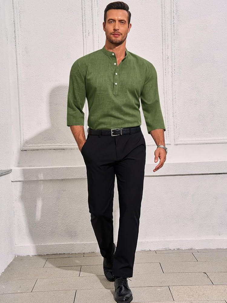Fabric: Our henley linen shirts are made of soft and comfortable fabric, skin friendly, lightweight, breathable, wrinkle free, will provide you comfort wearing experience and keep you cool and relaxed in all summer day