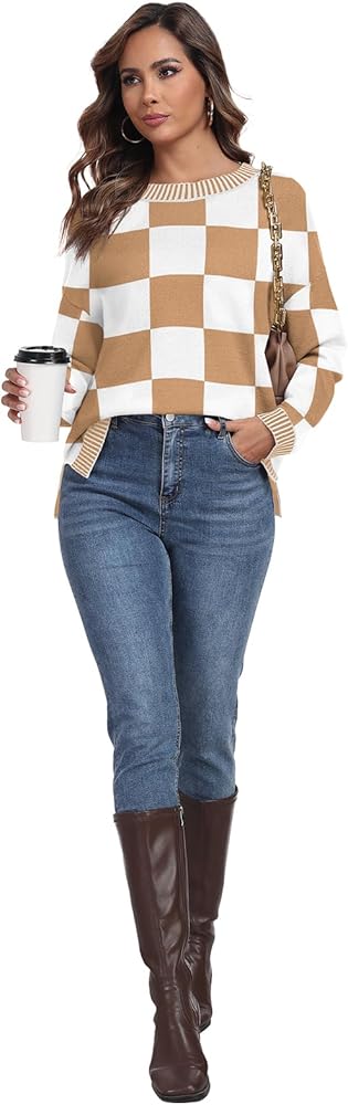 Versatile Style: The Prinstory Women's Fall Clothes Sweater pairs easily with leggings, jeans, button down shirts, dresses, skirts, over-the-knee boots, or sneakers for a glamorous and stylish look; the unique color-blocking design provides a fashionable look