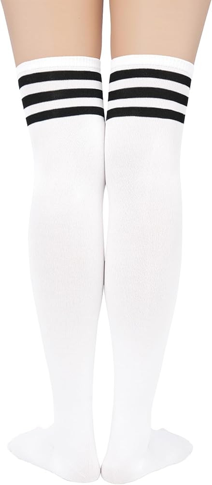 Size: And now for the most important part: size! Each striped thigh-high sock measures approximately 56 cm/22 inches in length, which can stretch above the knee and comfortably wrap the legs – perfect for keeping you cosy and stylish all day long! One size fits most women and girls perfectly!