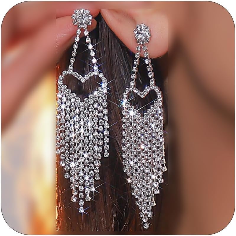 SILVER SPARKLING EARRINGS: Stylish and unique, these rhinestone tassel earrings are perfect for a variety of outfits and will bring you compliments on any occasion.